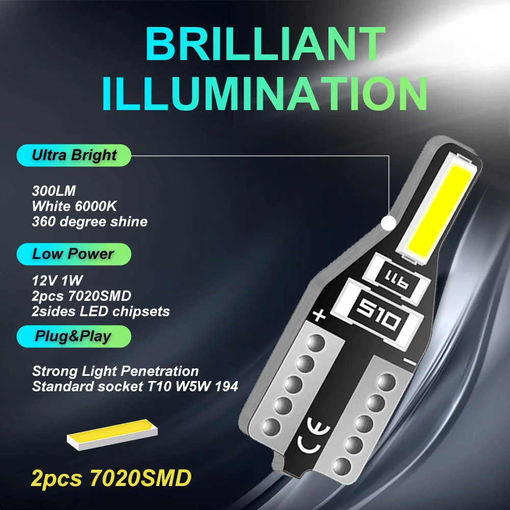 Светодиодная лампа AUXITO T10, светодиодная лампа W5W 7020 2SMD 194...