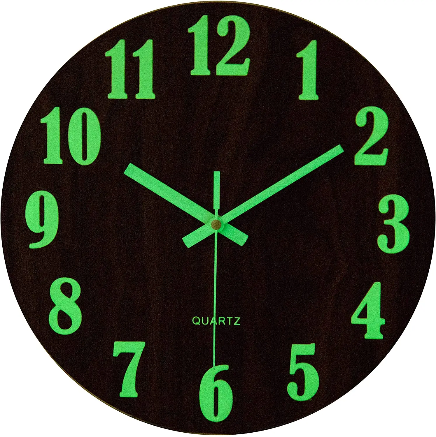 Деревянные настенные часы светящиеся цифры Висячие часы тихие Светящиеся в темноте настенные часы Современные часы украшение для гостиной