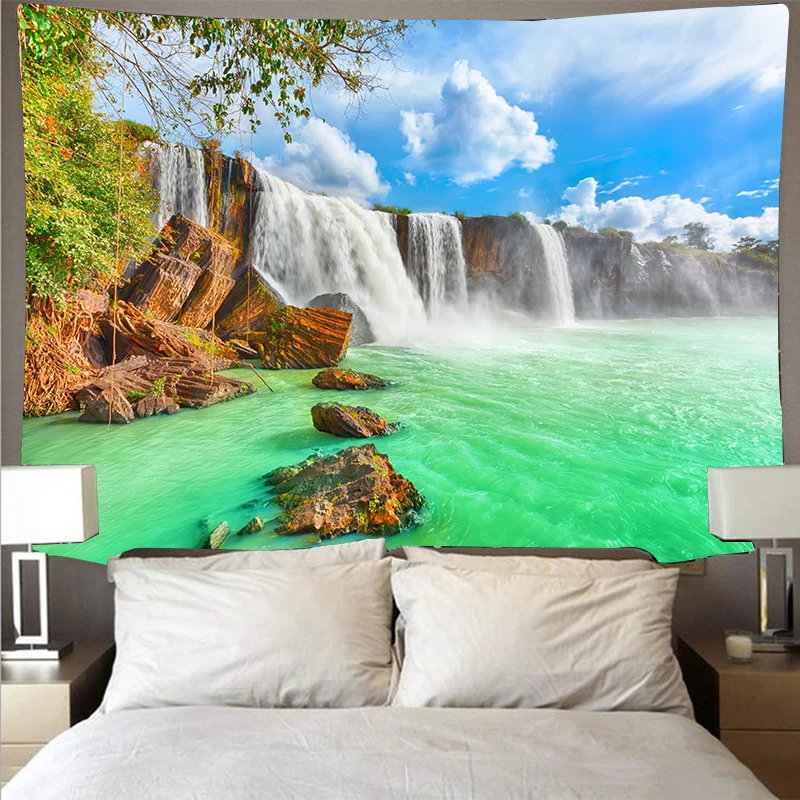 Горный лес водопад озеро гобелен с пейзажем напечатанное настенное покрытие psychedelic настенное пляжное полотенце тонкое одеяло для йоги