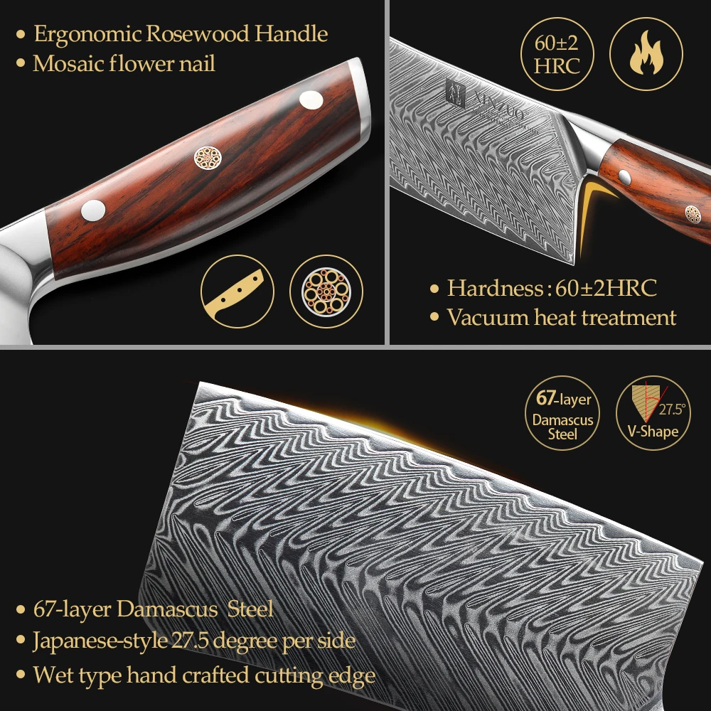 XINZUO Yi серии Дамасская сталь костяной измельчитель нож