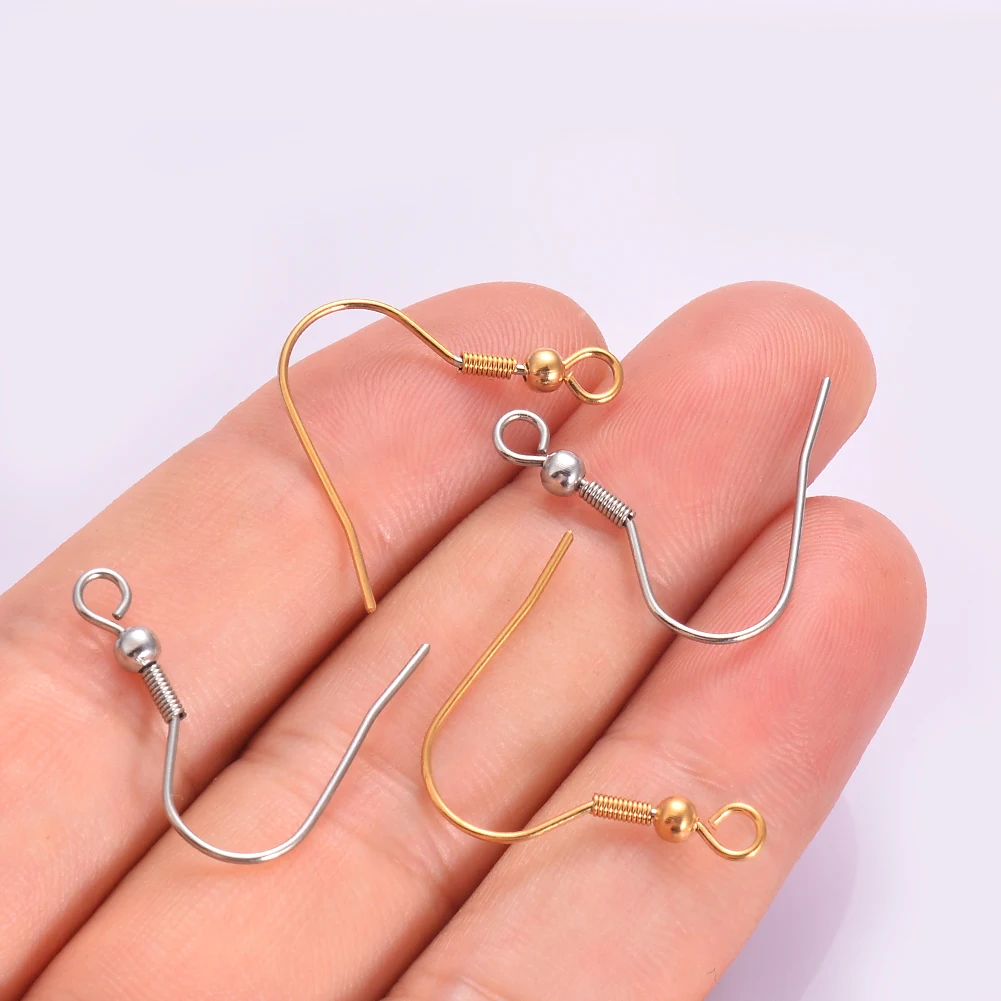 Серьги-Крючки гипоаллергенные, из нержавеющей стали, золотистые, серебристые, с катушкой и шариком, для изготовления ювелирных изделий, 20 х22 мм, 20 шт.
