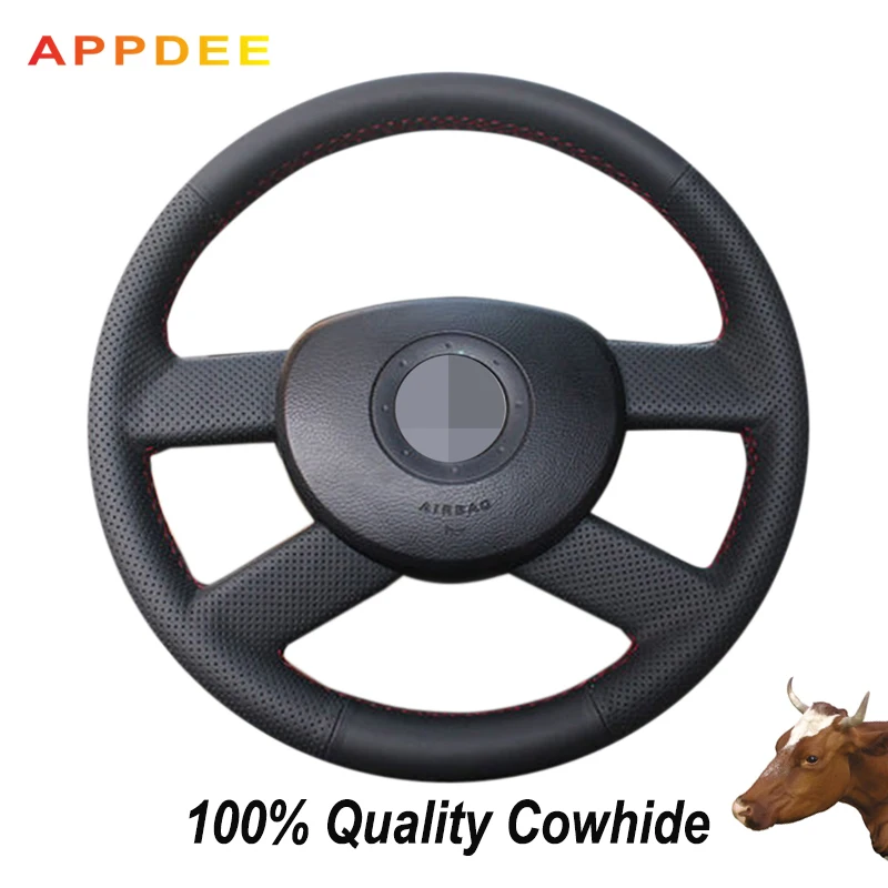 APPDEE черная натуральная кожа чехол рулевого колеса автомобиля для Volkswagen VW Polo 2003-2006