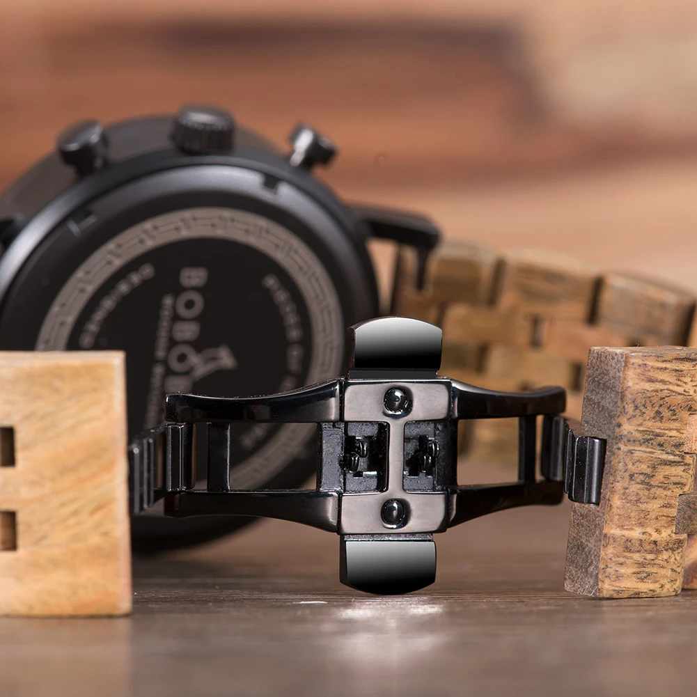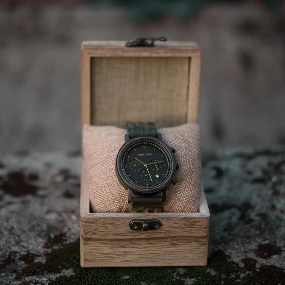 Reloj hombre BOBO BIRD деревянные часы мужские кварцевые наручные часы Секундомер мужской роскошный деревянный ремешок подарок для Него Прямая поставка часы