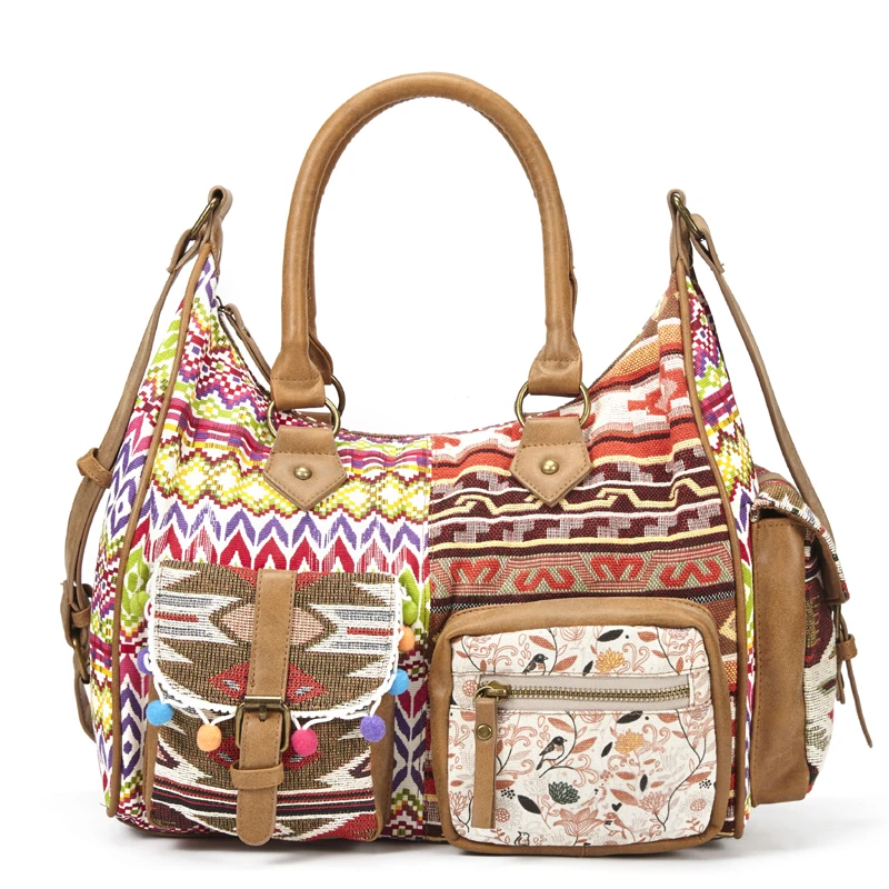 Большая женская сумка Annmouler, тканевая сумка через плечо с несколькими карманами, сумка через плечо в богемном стиле, женская сумка в стиле пэчворк, сумка-тоут, кошелек