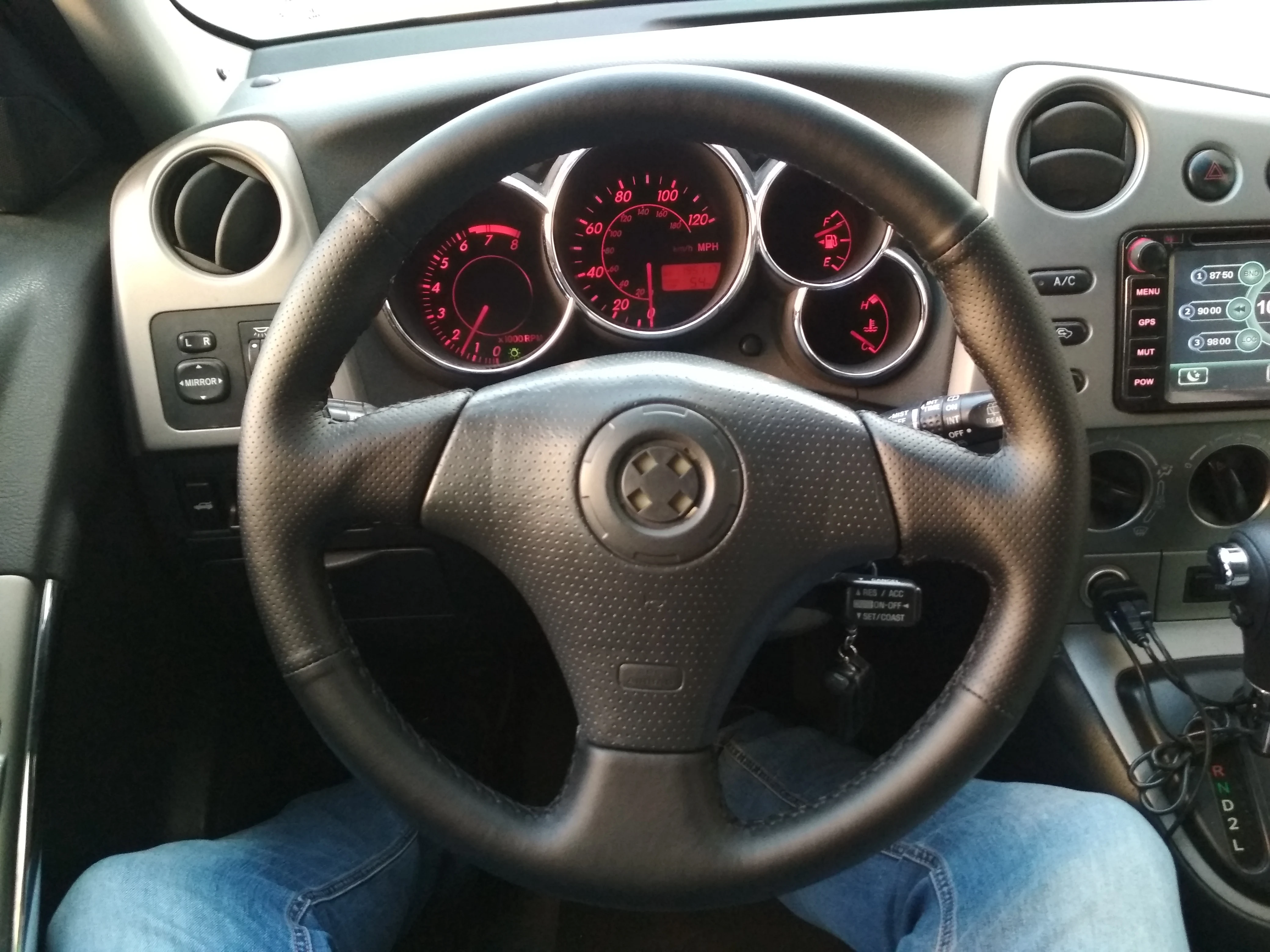Чехол очень качественный, кожа мягкая, приятная на ощупь. Перетягивал руль на Pontiac Vibe 2003. Выбрал этот т.к. по описанию и картинкам был очень похож. Возможно мой руль несколько толще и на сухую я стянуть не смог. Оплетку замочил в теплой воде и после этого стало гораздо проще зашнуровать чехол на руле. Получилось отлично – руль как новый!