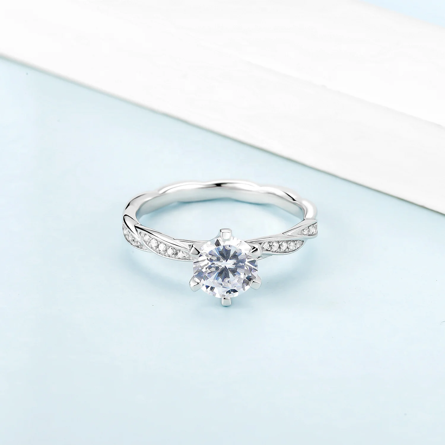 Gem балетки 925 стерлингового серебра Пять зубец кольца Свадебные ю...