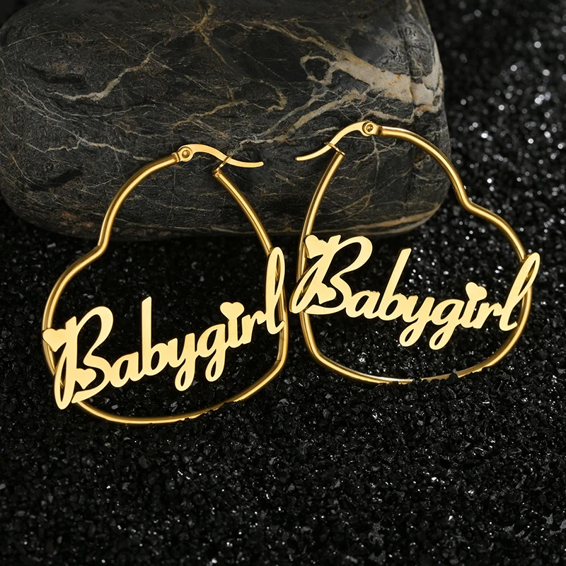 Серьги Raexrage в форме сердца с индивидуальным именем, серьги с плоской линией из нержавеющей стали, Индивидуальные женские украшения на Рождество