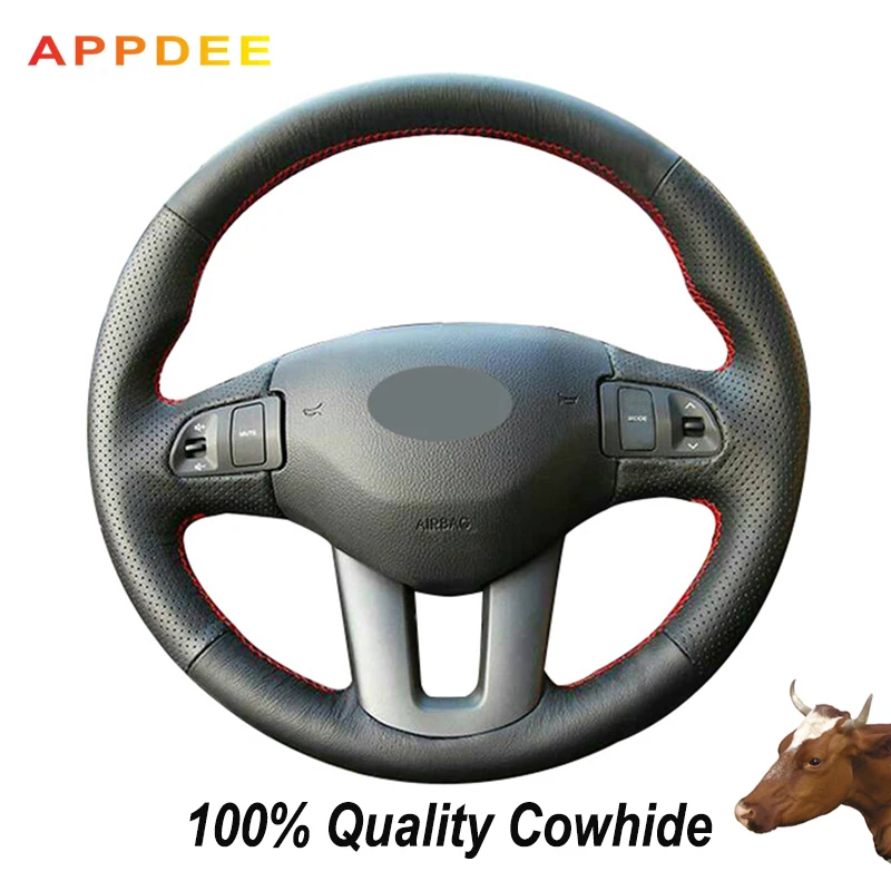 17 черный чехол рулевого колеса автомобиля из натуральной кожи для Kia Sportage 3 2011 2012 2013 2014 Kia Ceed 2010