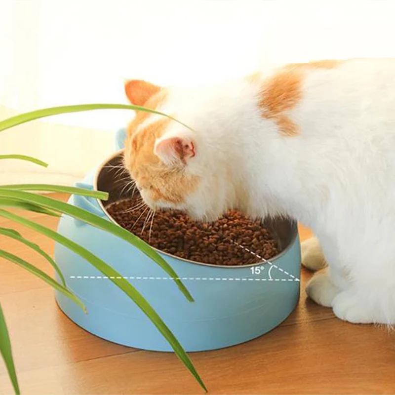 Миска для собак и кошек кормушка для кошек, поилка для корма для домашних животных, приподнятая на 15 градусов, миски для кошек, собак, из нержавеющей стали, для щенков, миска для собаки, домашних животных, аксессуары