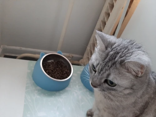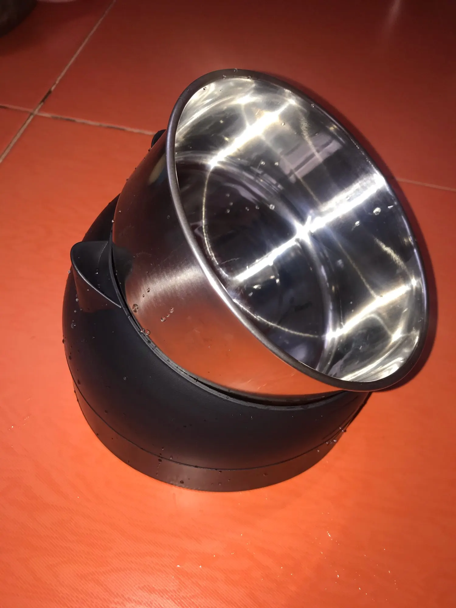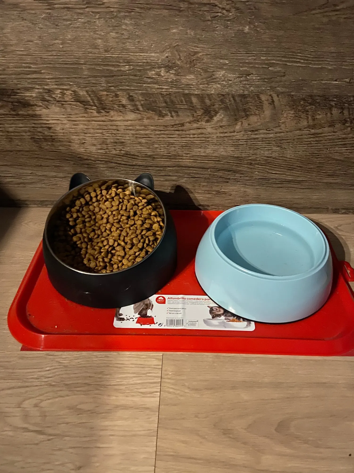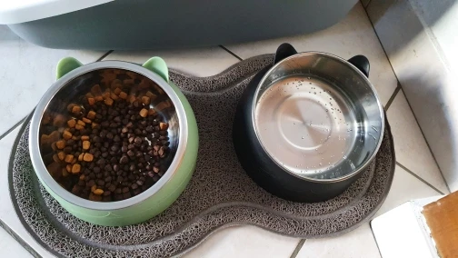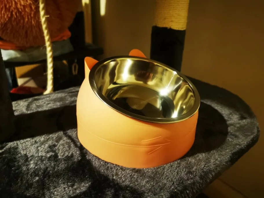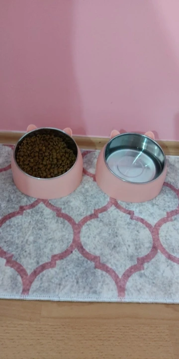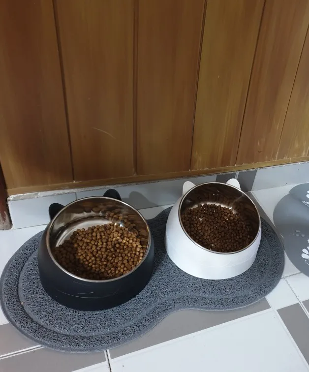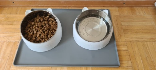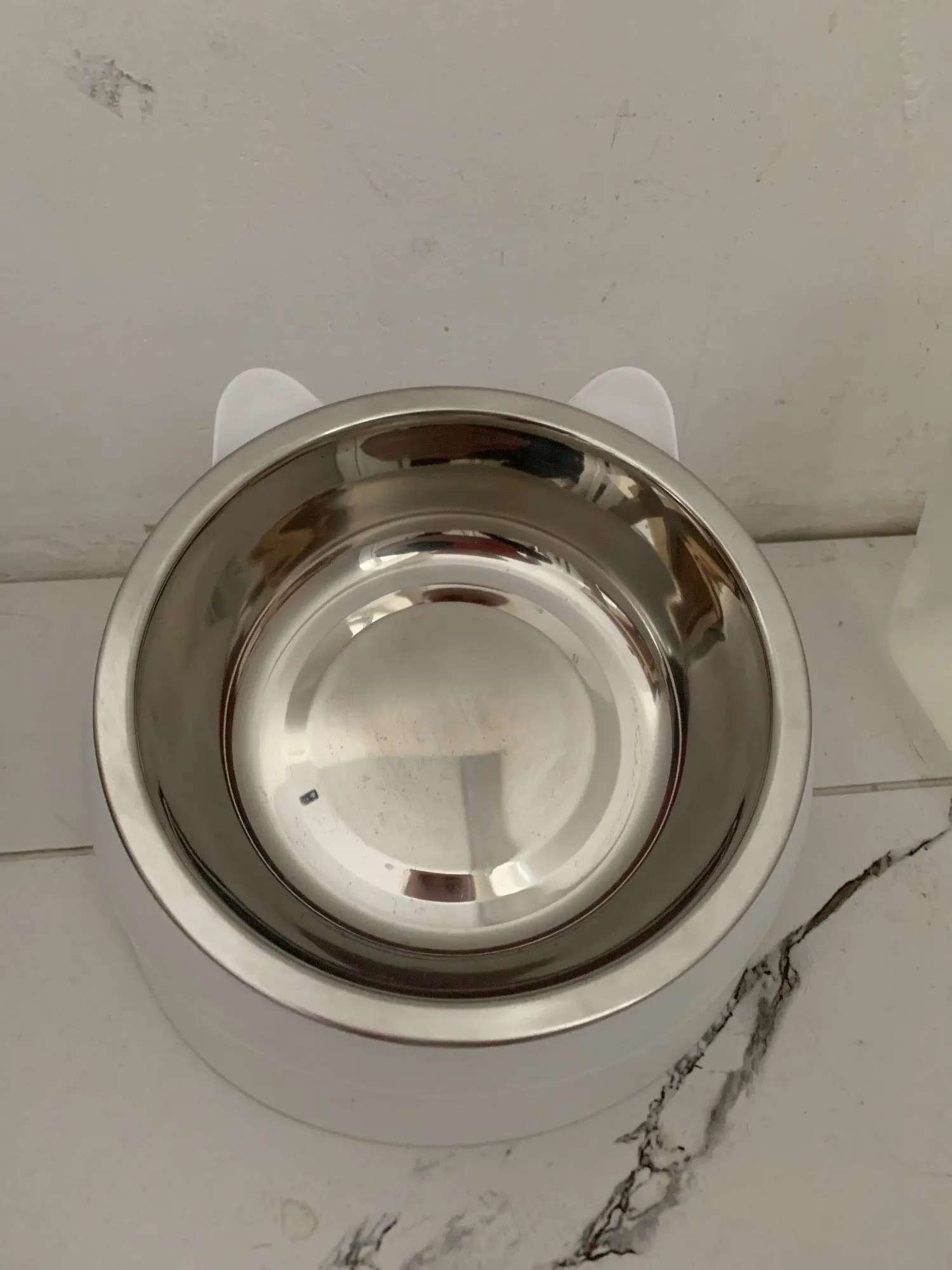 К сожалению, одна миска пришла немного треснутой, пришлась клеить. Неудобно наливать воду, так как из-за сильного наклона вода выдувается. Только на самое донышко выходит налить