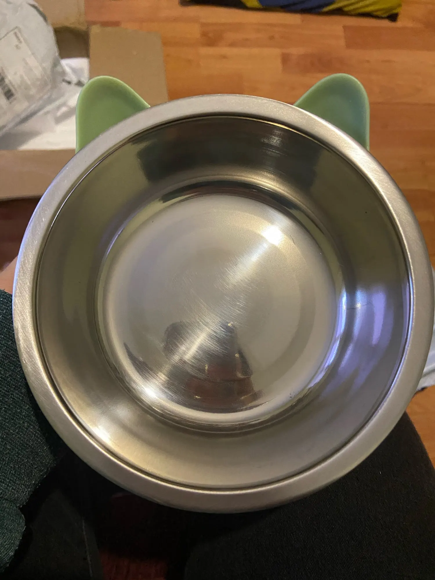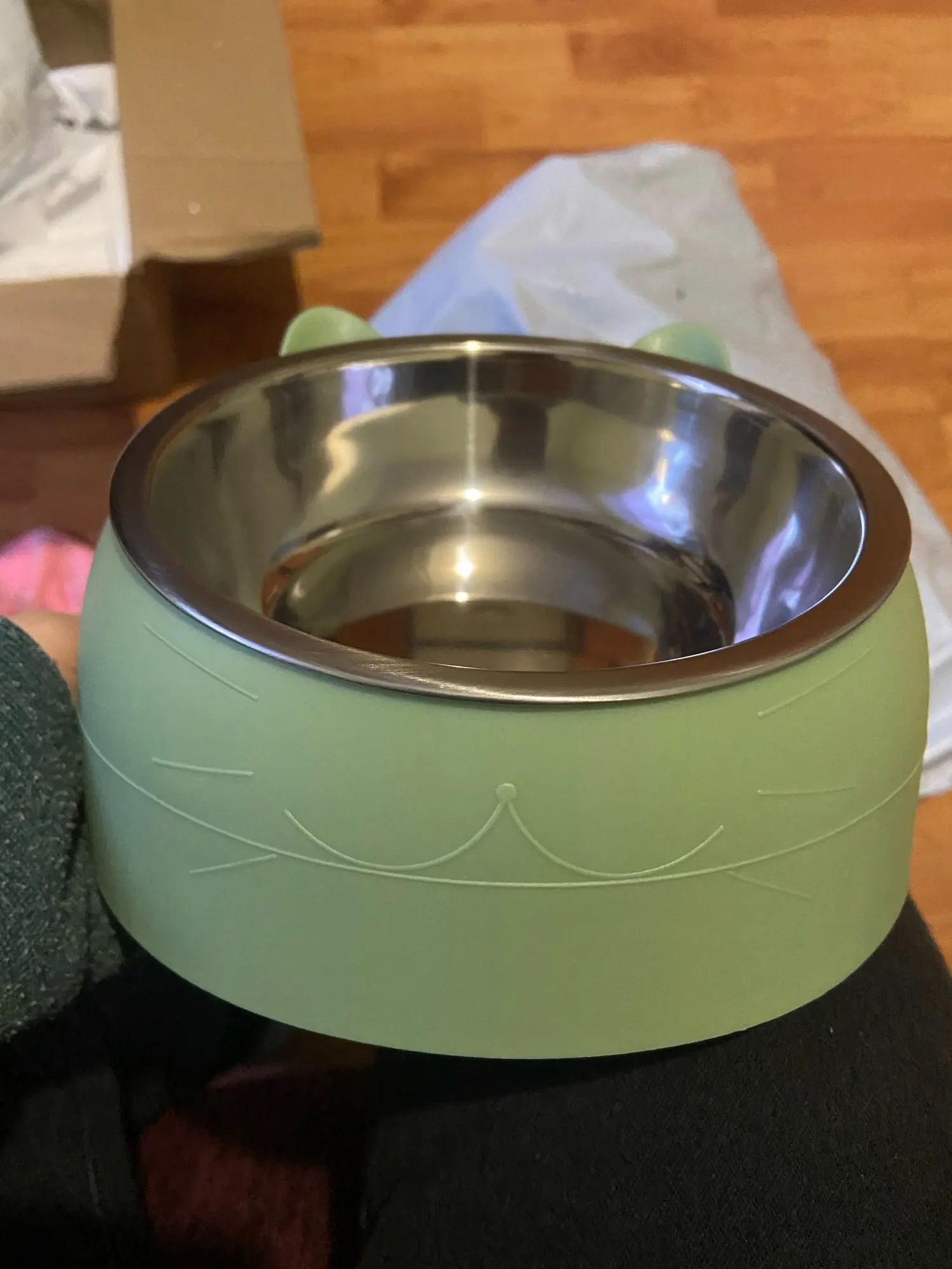 Заказала 2 штуки. Одна пришла битая(((. Написала продавцу- он Сразу отправил мне другую взамен . За что ему - огромное человеческое спасибо ! Очень надеюсь, что прийдет в целости). Сама Мисочка качественная состоит из двух частей- железная мисочка и пластиковая каемка. Миска глубокая, удобно в неё наливать воду и жидкие блюда - ничего не разбрызгивается. Фото продавца соответствует