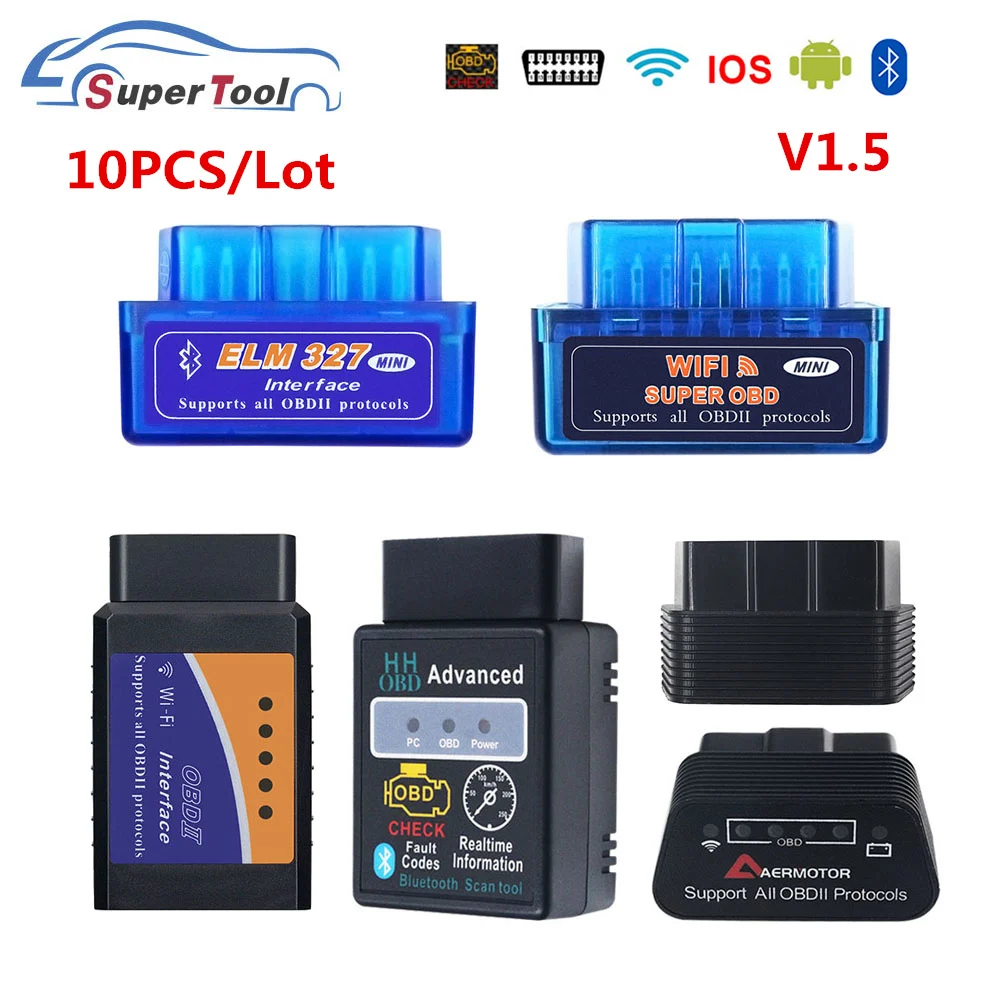 Автомобильный сканер ELM327 V1.5, считыватель кодов с Wi-Fi, ELM 327 Wi-FiWi-Fi V1.5, для AndroidIOSWindows, с поддержкой 9 протоколов, 10 шт.