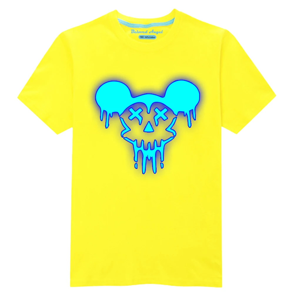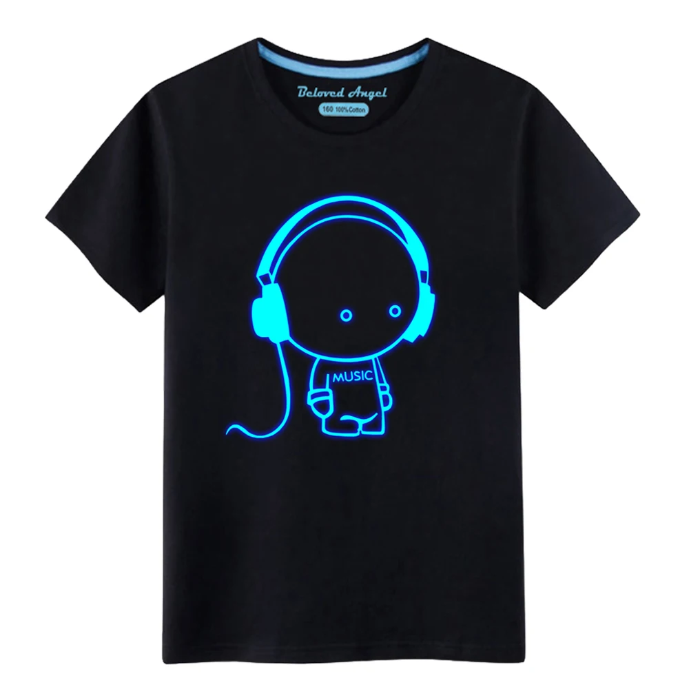 Светящаяся футболка для мальчиков модная повседневная детская футболка с рисунком топы для маленьких девочек, футболки, одежда для малышей Летняя одежда для детей от 3 до 15 лет