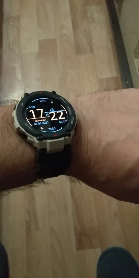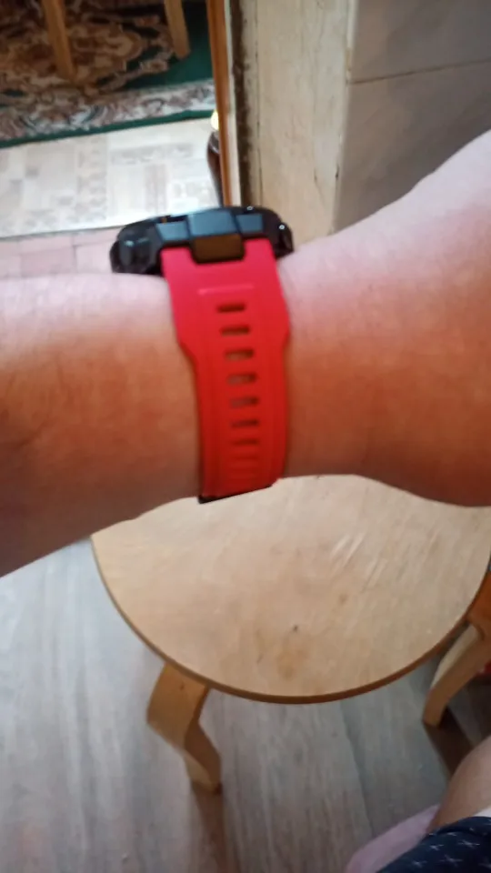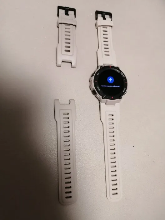 Доставка в ЯНАО меньше трех недель. Трекер отслеживался. Описание соответствует. На фото часы уже с новым ремешком, рядом, который шёл с часами (носил не снимая пол года). По ощущению ремешок такой же. Пока доволен. По результатам использования отпишусь дополнительно.
