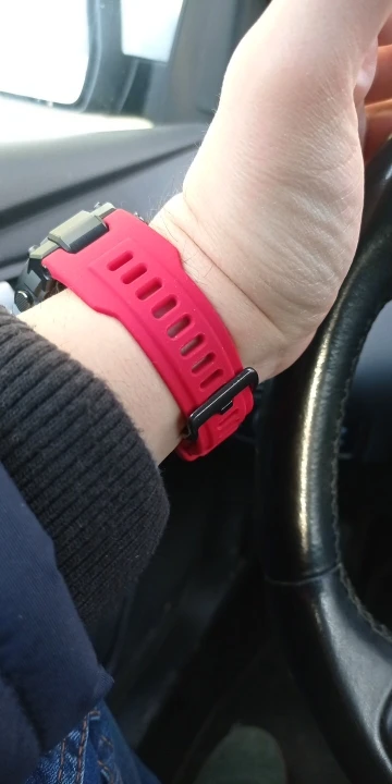 Приятный на ощупь ремешок плюс металлическая застежка. Взял про запас, пока ношу родной.