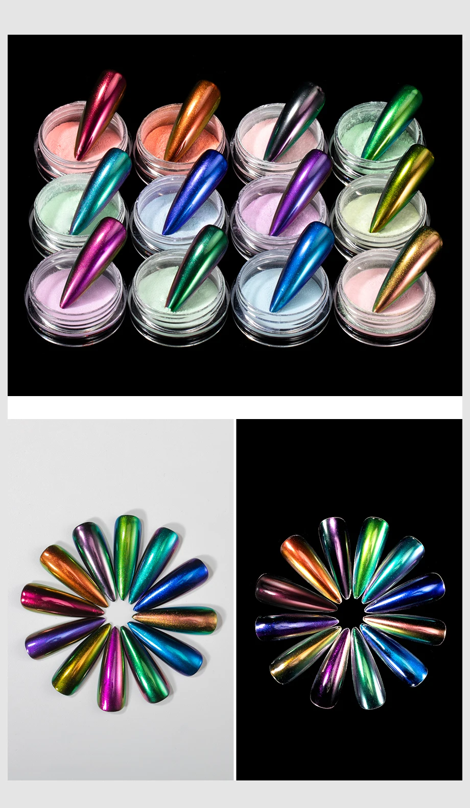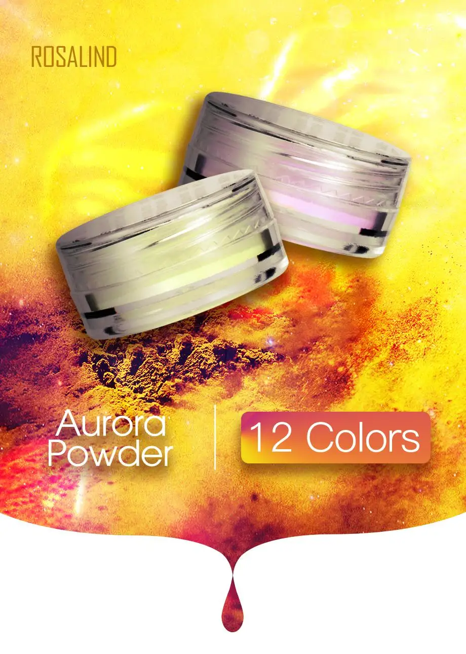 Порошок ROSALIND Shine Aurora для дизайна ногтей, блестящий цветной пигмент, пыль для ногтей, украшение для дизайна ногтей, Полуперманентная верхняя база