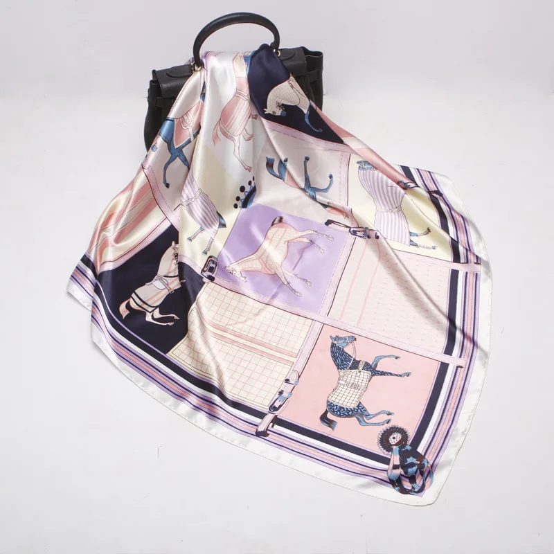 2020 Модный Шелковый атласный шейный платок для женщин хиджаб с принтом шарфы женские 90*90 см квадратные шали и палантины шарфы для женщин