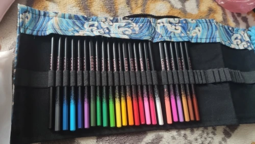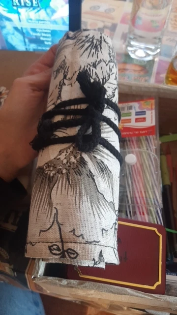 Крепкий! Хорошо сшито! Большой размер на резинке, которая удерживает карандаши! Отличный продукт!