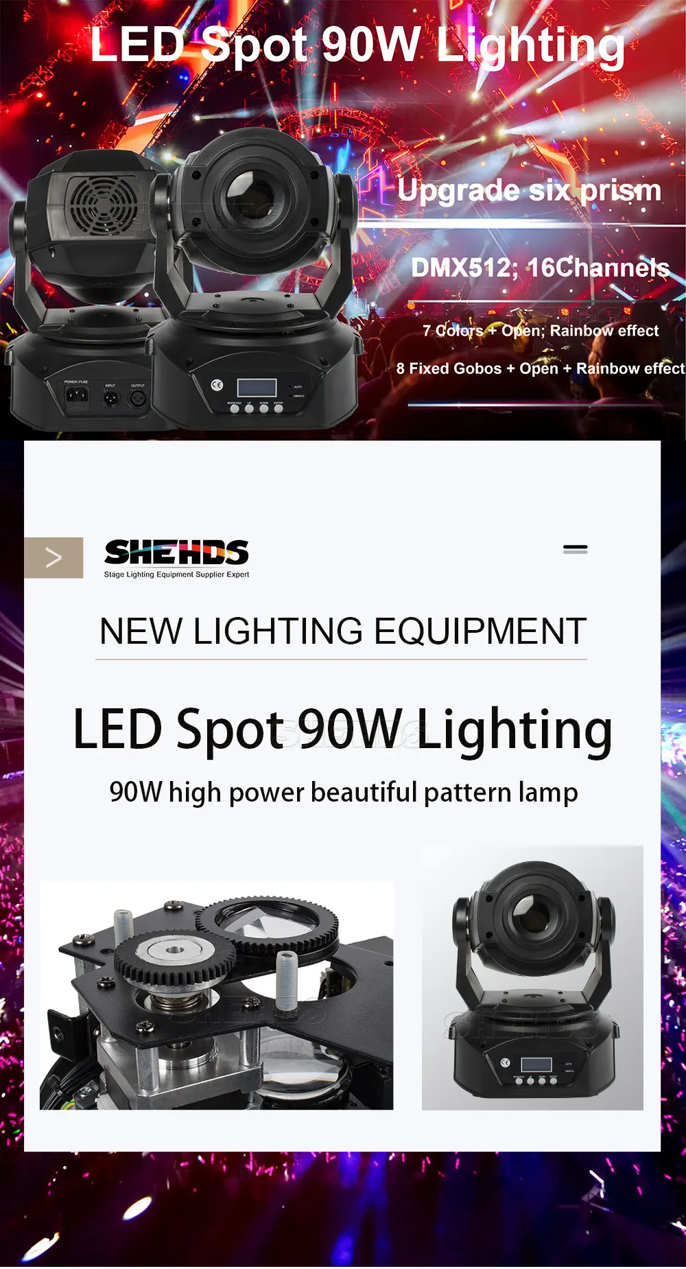 SHEHDS 60 Вт светодиодные прожекторы с движущейся головкой, управление DMX с Gobo, высокая яркость, для дискотеки, диджея, бара, шар, сценическое освещение для вечеринки