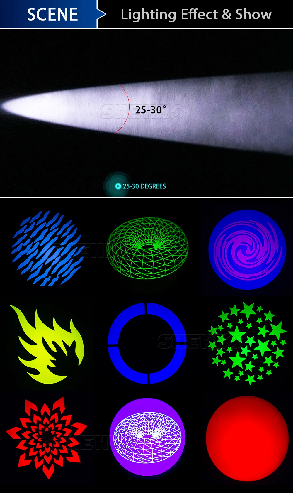 Gobo wheel7 gobo +open, gobo - flow effect, gobo shake