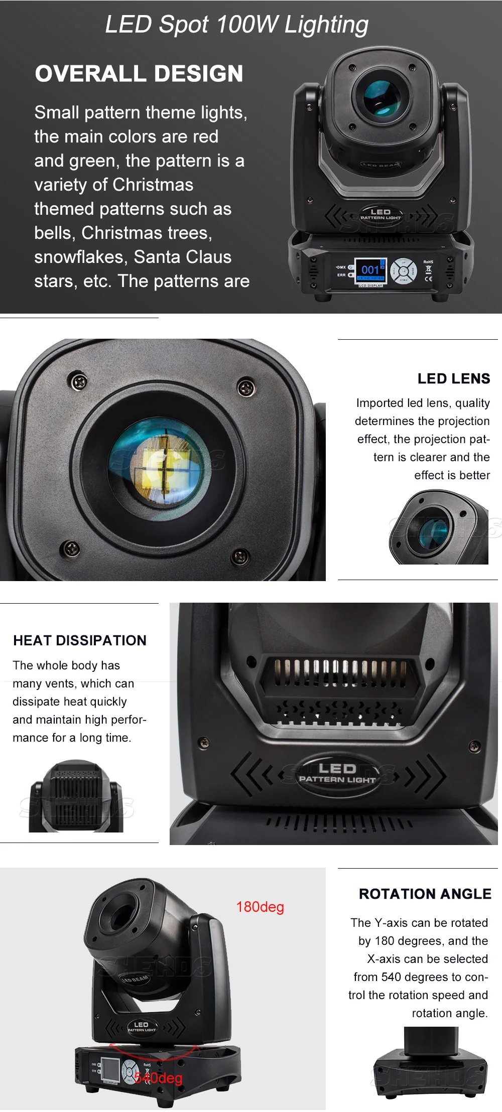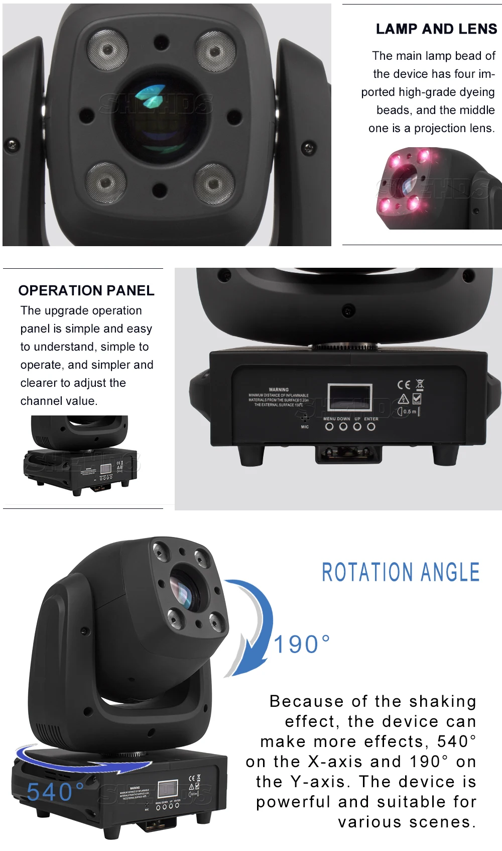 * Использование помещений: сцены, ночные клубы, дискотеки, отели, магазины, семейная вечеринка на день рождения, подходит для ди-джеев и т. Д.