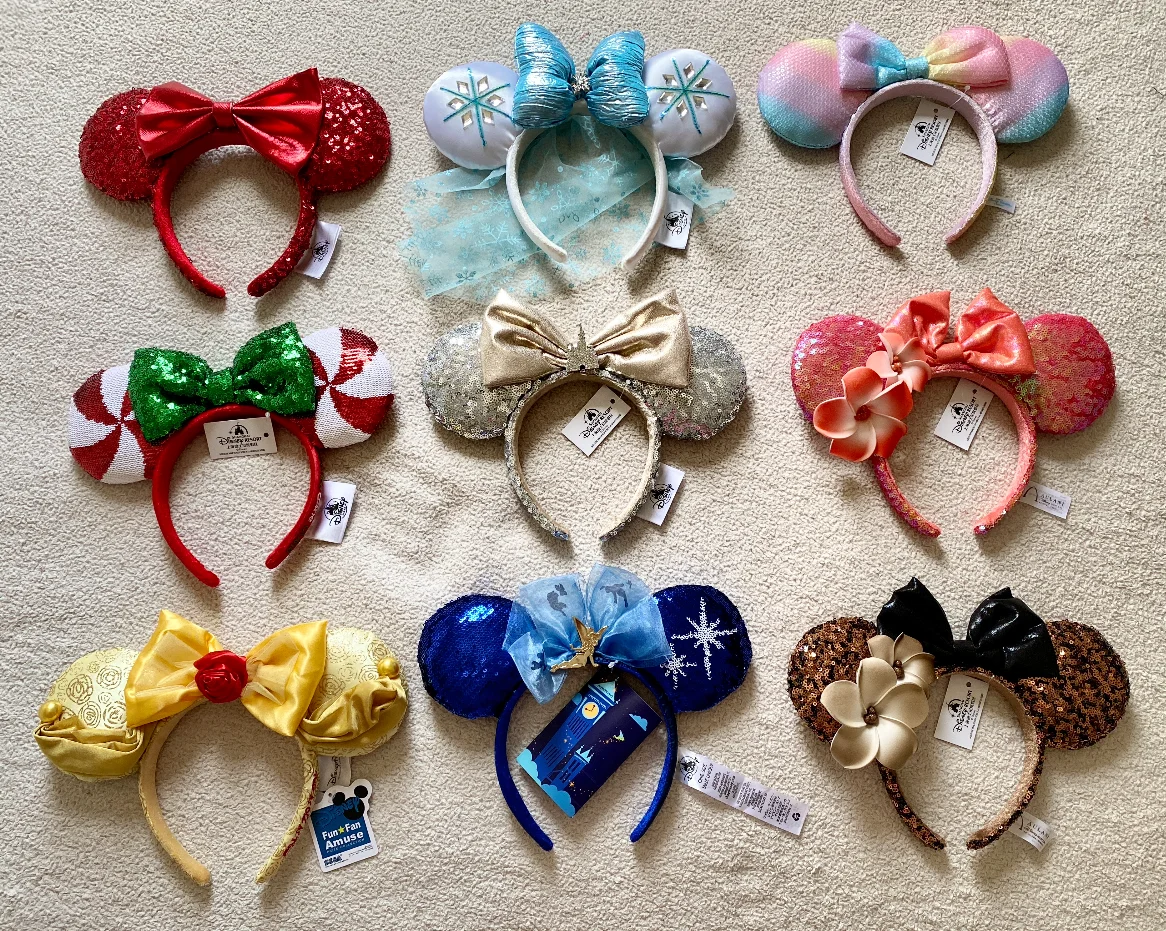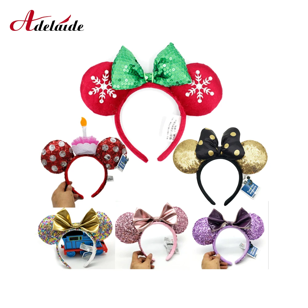 Уши Минни-Маус повязка на голову с блестками микки мауса фиолетовый аулани золотой цветок в горошек Ариэль уши костюм на Хеллоуин повязка на голову Косплей плюшевый подарок