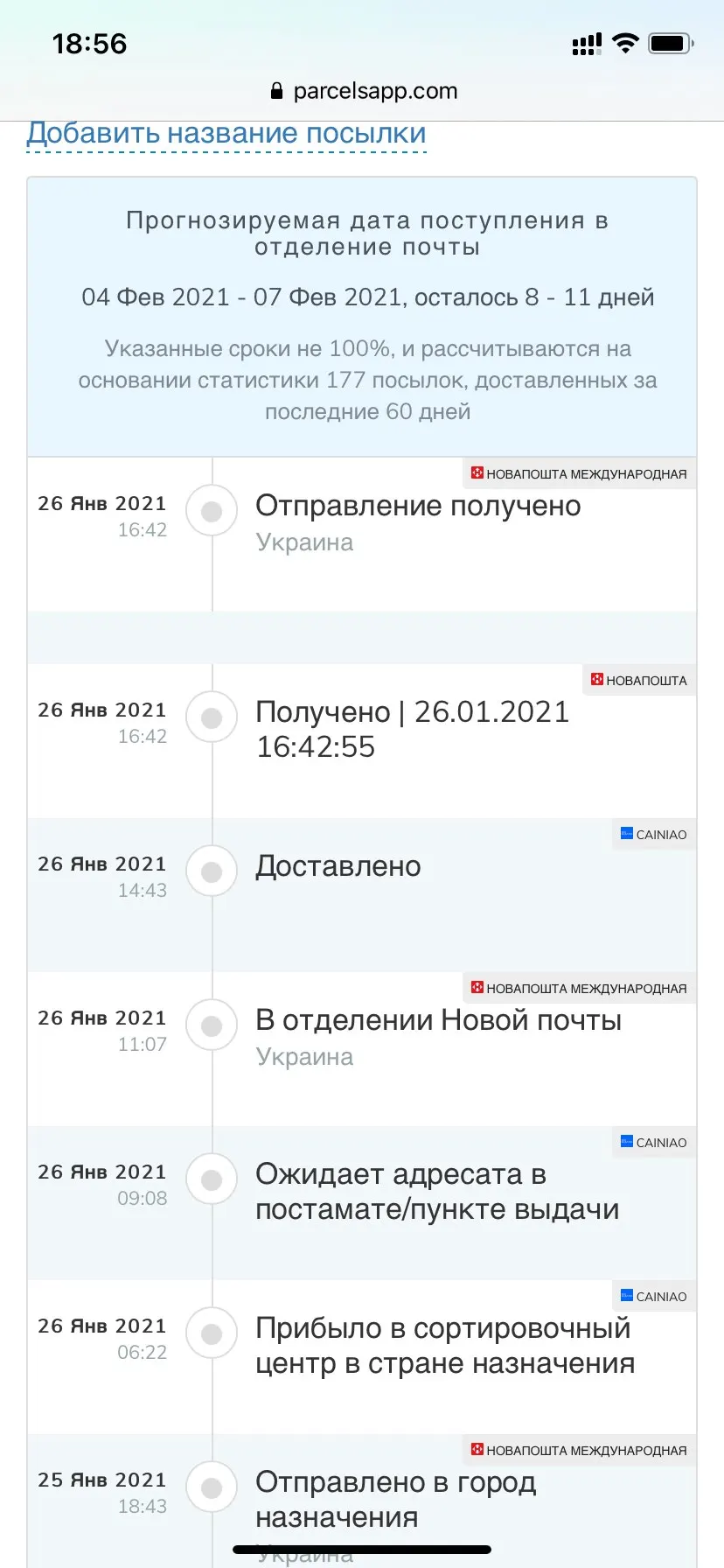 Посылку не получила. Первый раз ее потеряли, открыла спор. Продавец уверил что отправит снова. Дал номер, я отменила спор. Посылка отслеживалась. Сегодня увидела статус что посылка получена и выдана, но я ее не получала!!! Не соглашайтесь на отмену спора. Вы ничего не получите. Продавец обманщик.