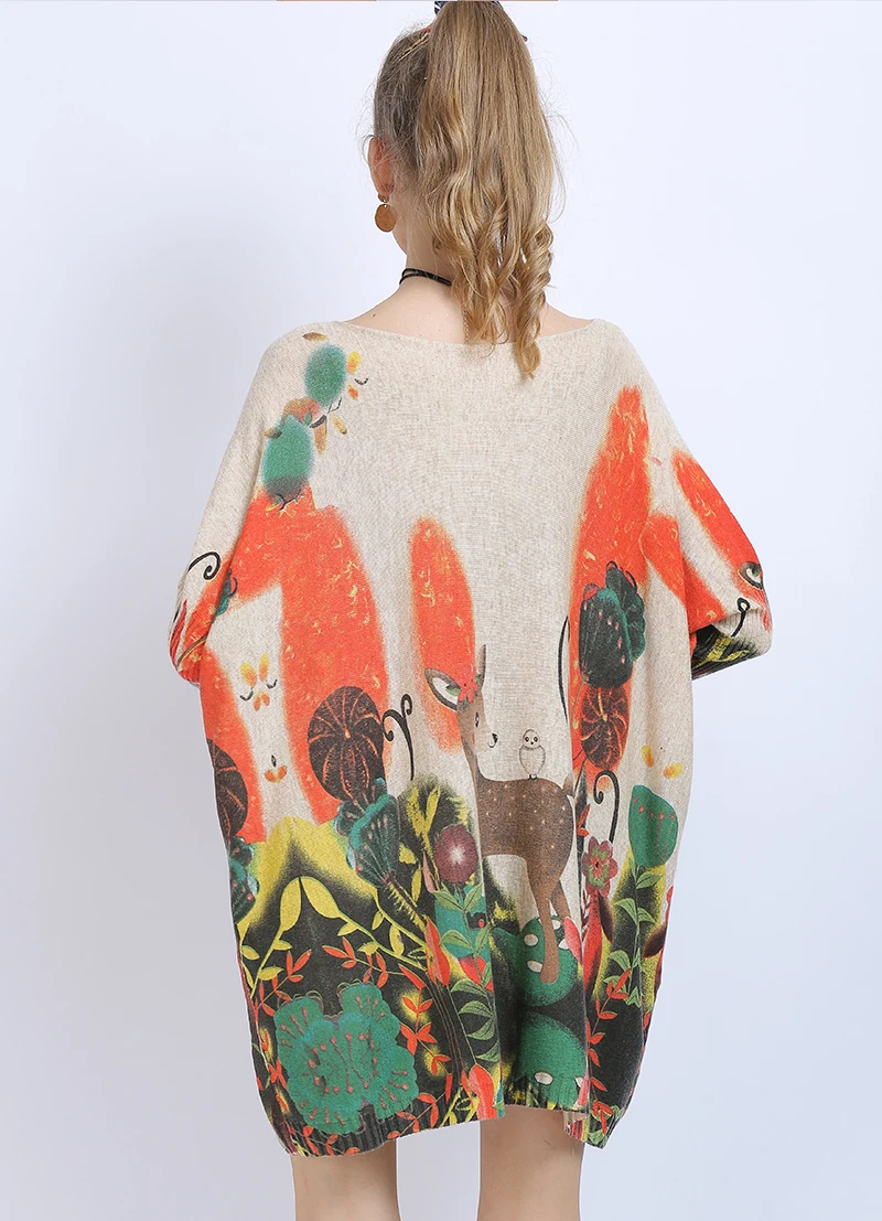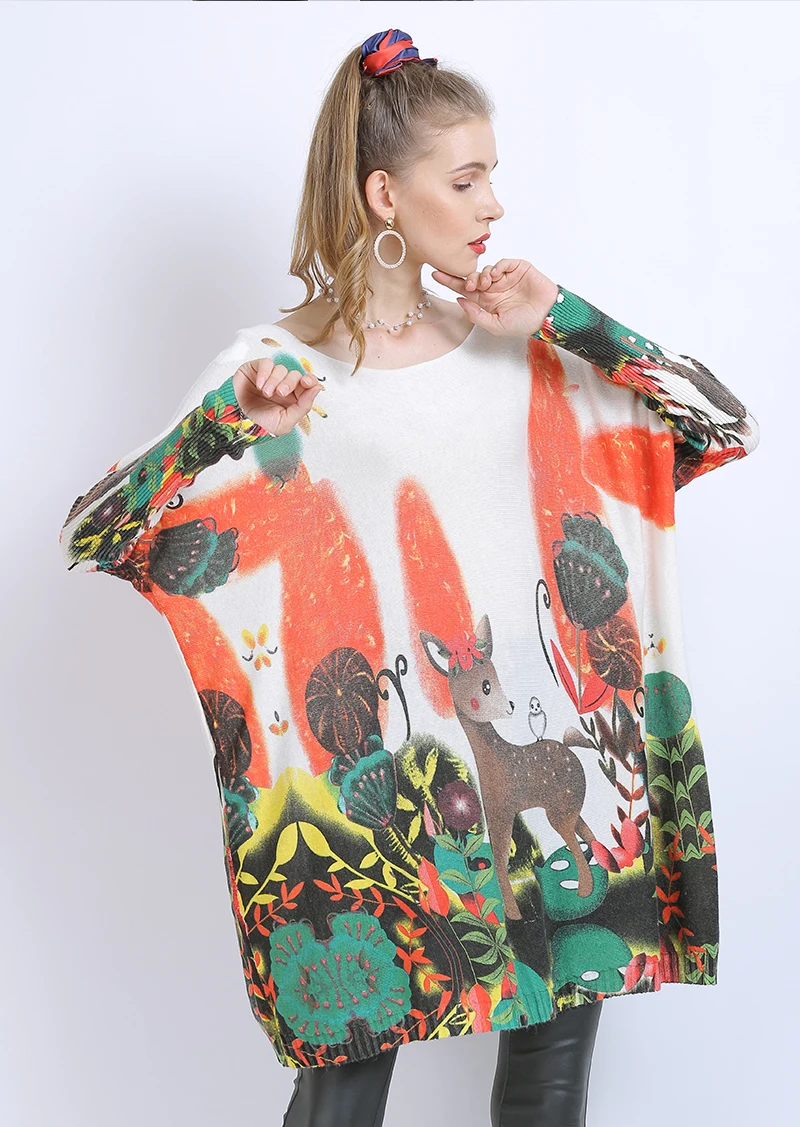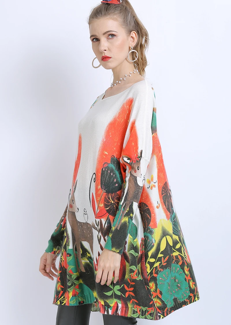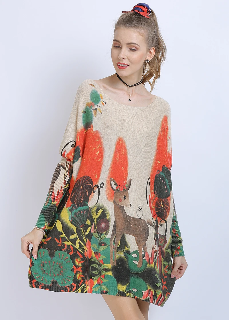 Зимние свитера XIKOI большого размера для женщин, теплые длинные платья-пуловеры, модный джемпер с милым принтом оленя, вязаные свитера для женщин