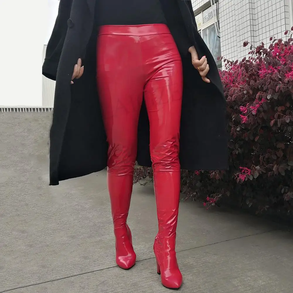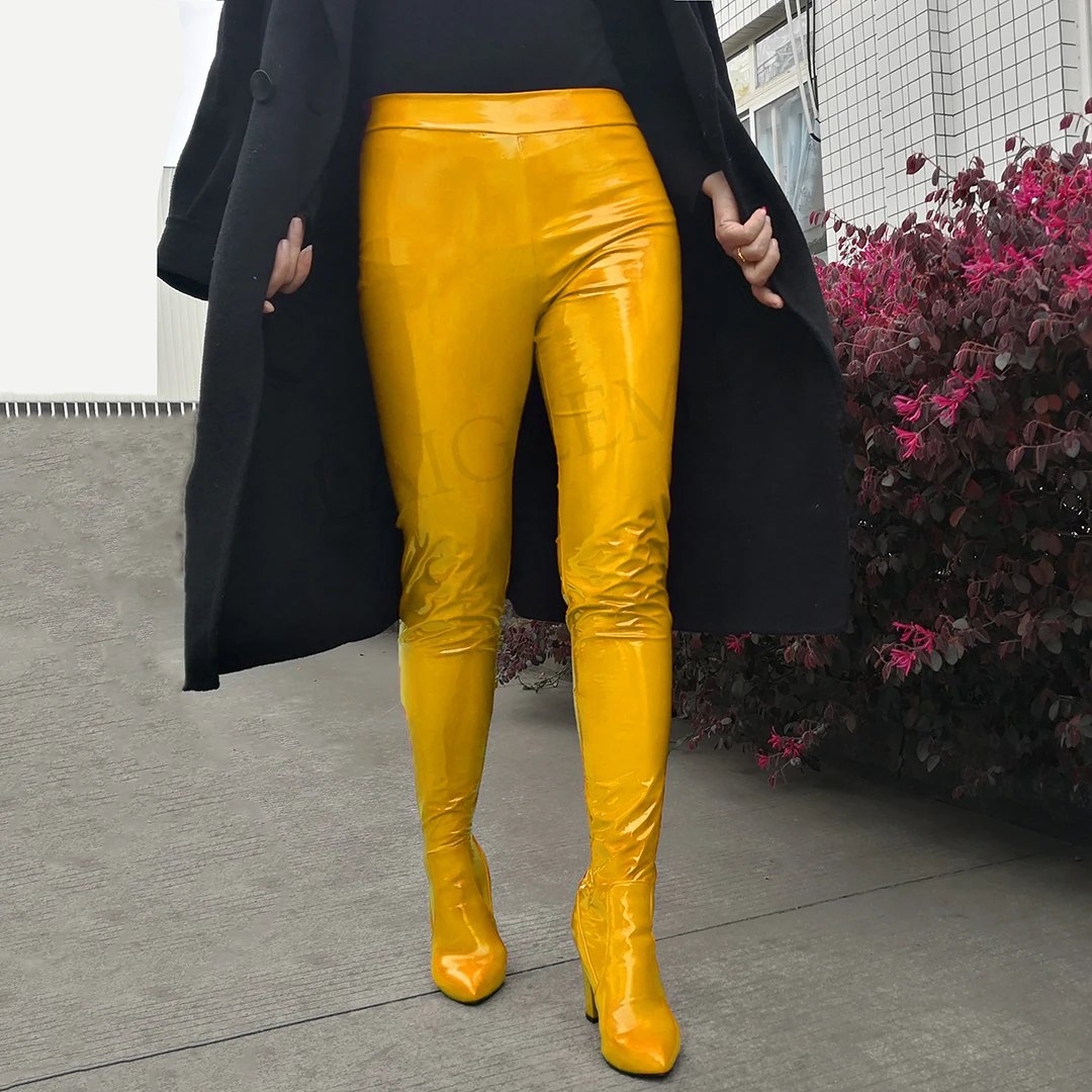 SEIIHEMженские ботинки со штанами эластичная латексная обувь на высоком массивном каблуке пикантные женские ботфорты; Zapatos; Большие размеры 43, 44, 47