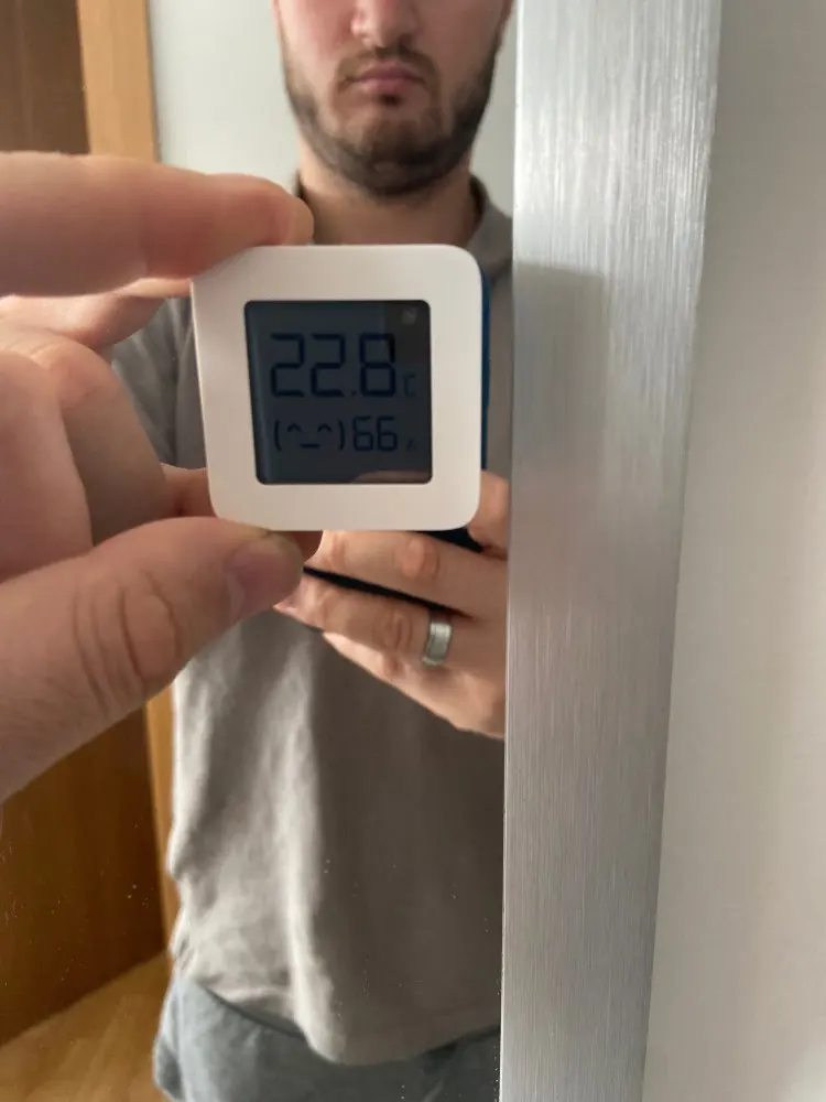 Термометр меньше, чем вы видите на фотографиях, но он также очень милый. Работает хорошо. Качество строительства и дизайна очень хорошее за ту цену, которую он имеет. Плюс, если вы связываете его с bluetooth-шлюзом Xiaomi, вы можете даже видеть из дома, и вы можете даже интегрироваться с Google Home (даже при проверке, но я увидел места, которые говорят, что вы можете).