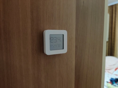 Маленький Термогигрометр Xiaomi, который очень практичен, а также выглядит довольно хорошо. Его маленький размер позволяет положить его где угодно. Он работает с батареями типа 2032, которые не включены. Принесите клей, чтобы приклеить его к стене, хотя он отлично держится на любой поверхности. Имея гарантию Xiaomi, я думаю, что измерения температуры и влажности будут правильными. Это заняло менее трех недель.