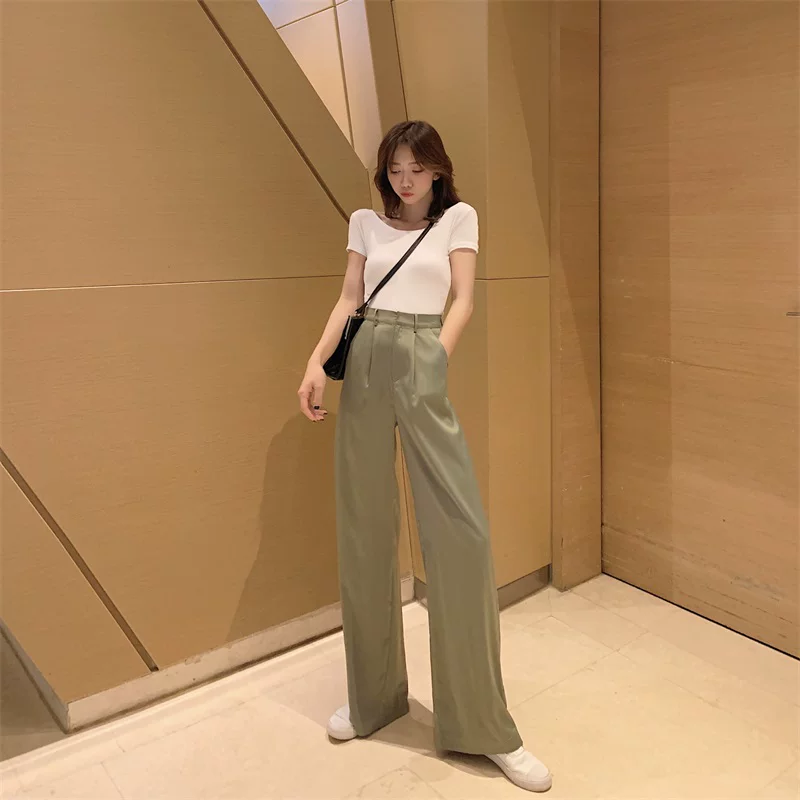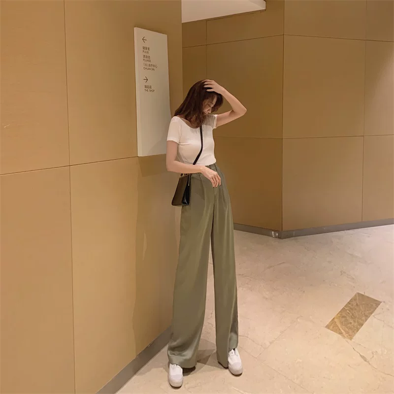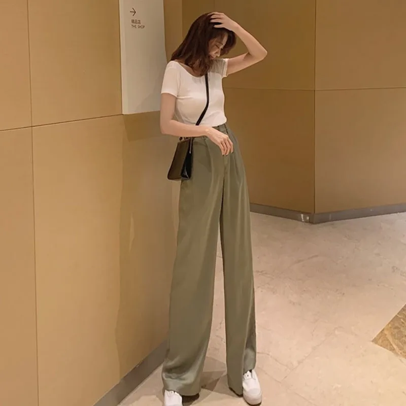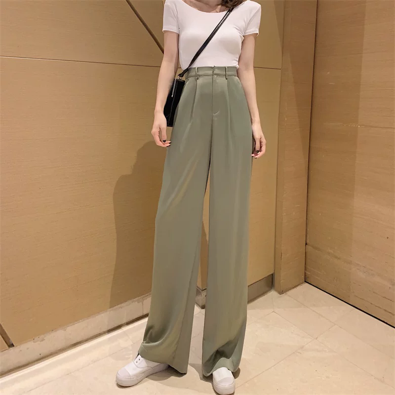 Женские широкие брюки с высокой талией, офисные элегантные тонкие прямые брюки в Корейском стиле, повседневные штаны для женщин, лето 2020