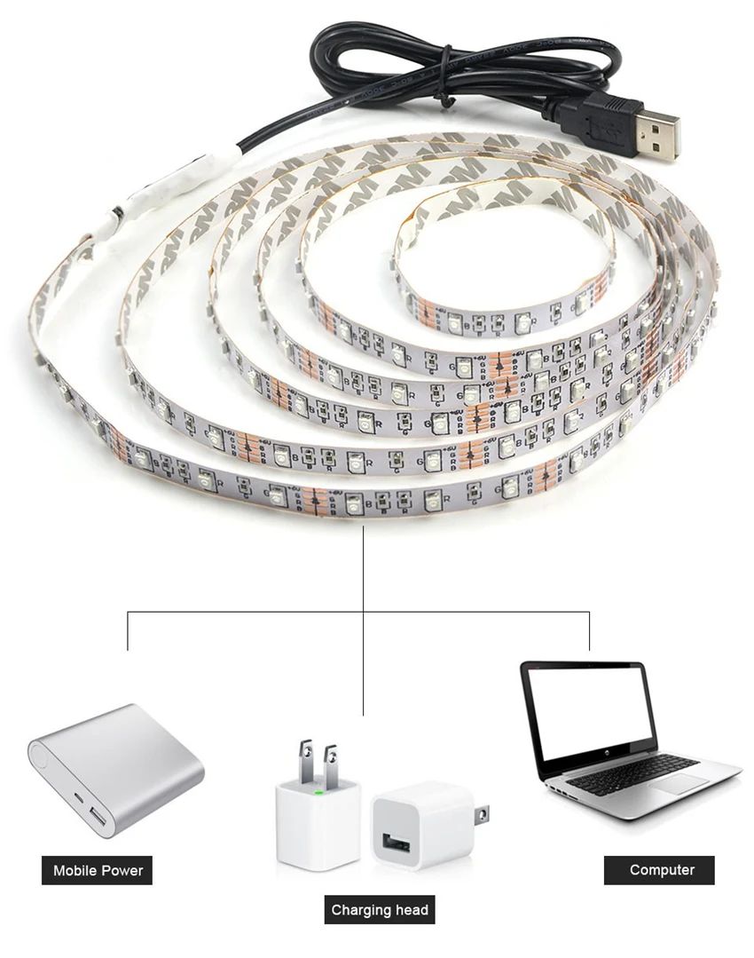 Светодиодная лента RGB 5 в USB 60 светодиодовм 2835 SMD Светодиодная гибкая лента HD TV Настольный ПК светильник ка экрана 1 м 2 м 3 м 4 м 5 м