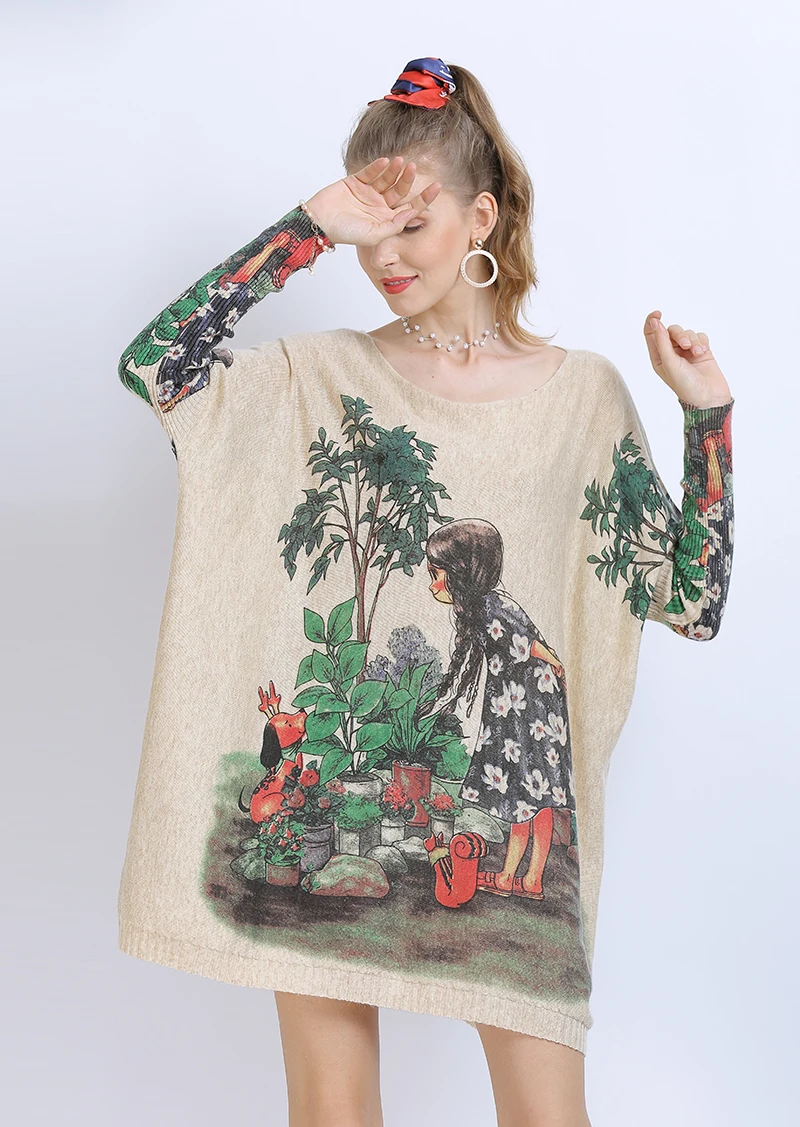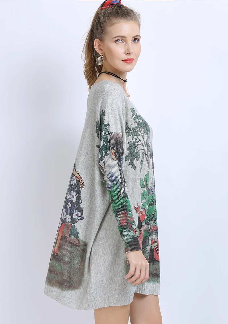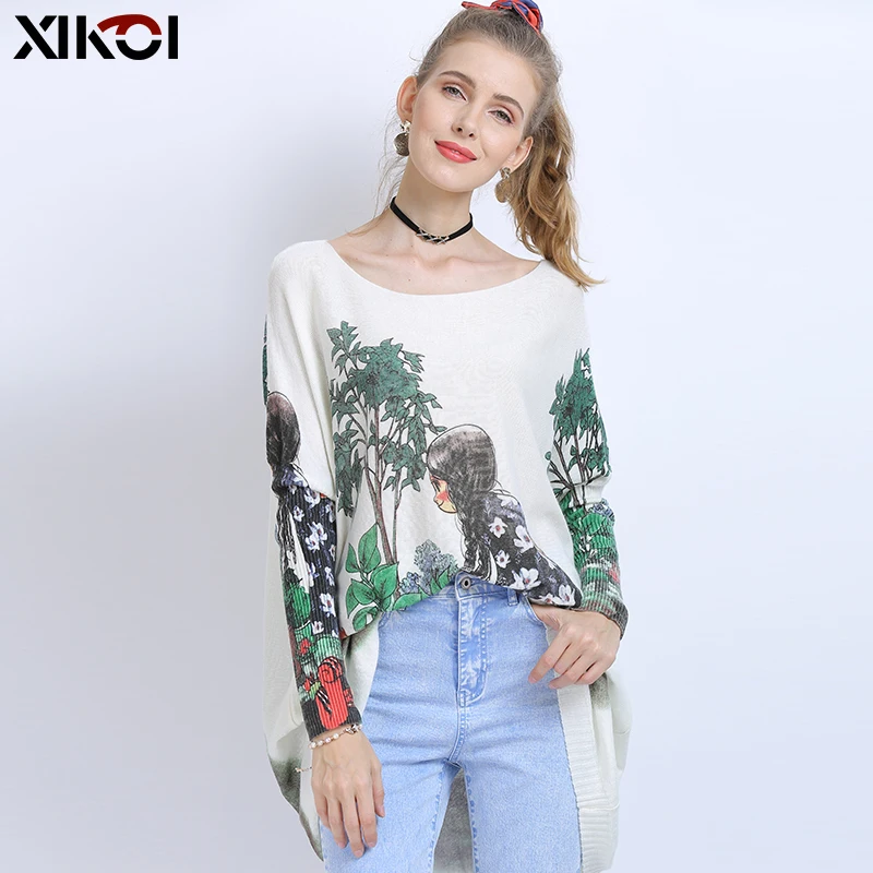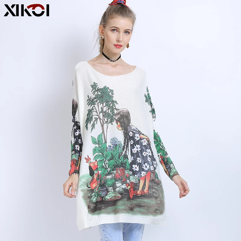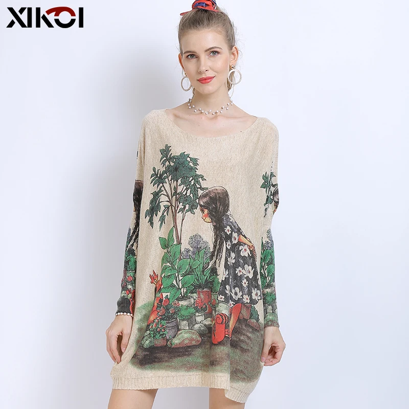 XIKOIзимние свитера больших размеров для женщин; Теплый длинный пуловер; Платья; Модный Милый джемпер с принтом для девочек; Вязаные свитера; Pull Femme