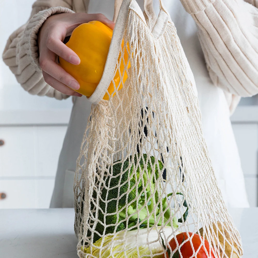 Хлопковая Сетчатая Сумка для покупок на шнурке, складные многоразовые тоуты для хранения фруктов, Женская Сетчатая Сумка-тоут для покупки продуктов