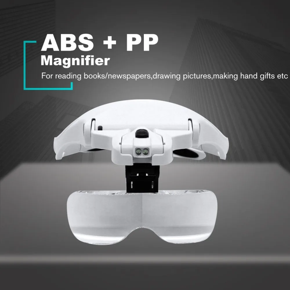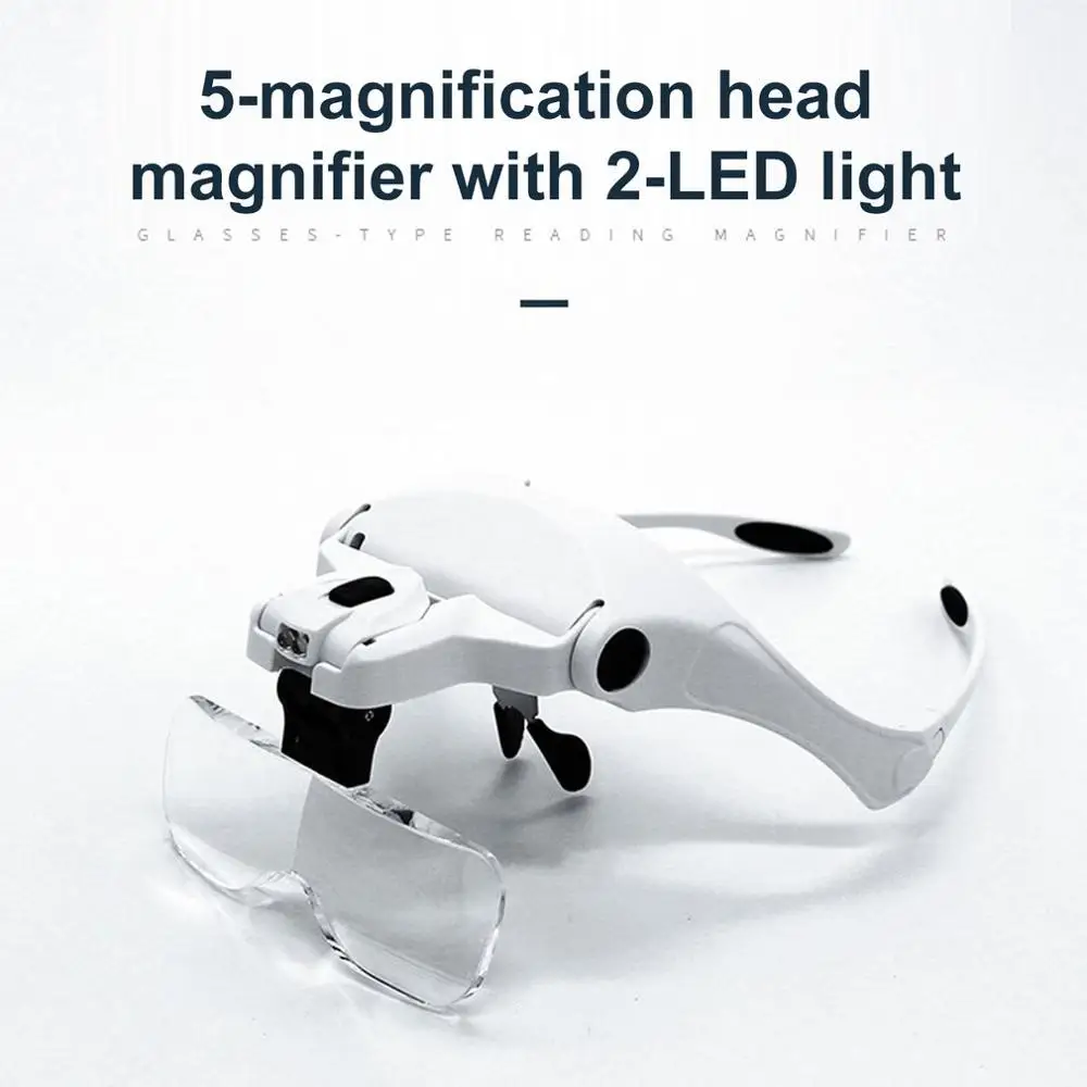 Увеличительные очки, Регулируемые светодиодные очки с 5 линзами 1.0X 1.5X 2.0X 2.5X 3.5X