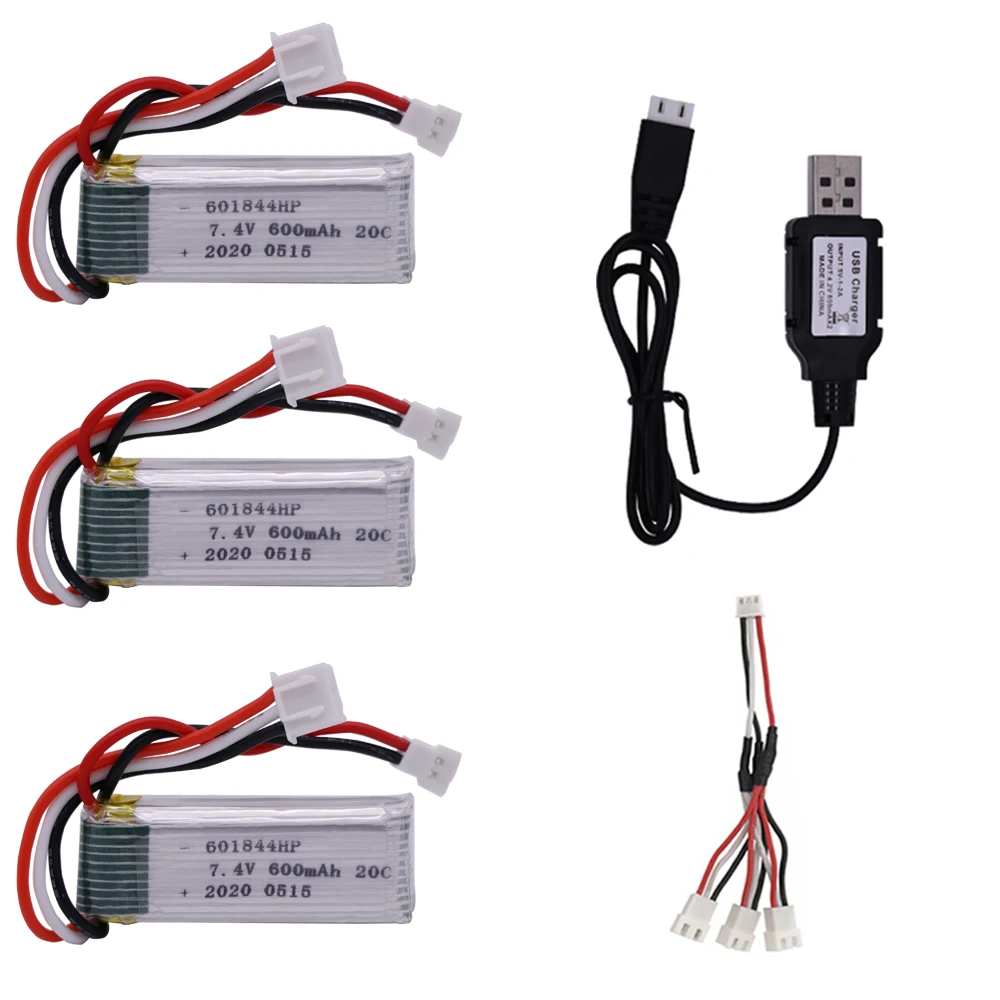 Обновленный Lipo аккумулятор 7,4 В, 600 мАч с зарядным устройством USB для WLtoys F959 XK, DHC-2, A600, A700, A800, A430, запчасти для радиоуправляемых автомобилей, аккумулятор 7,4 В, 2S, 25C