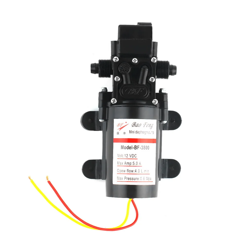 Особенности:Простота установкиРаботает сухой без системыПолностью герметичный, Высокое стабильное давлениеСамовсасывающий, бесшумный бег, низкое энергопотреблениеПростое подключение системыРабочий цикл двигателя будет варьироваться в зависимости от нагрузки и температуры окружающей средыКогда вода выключена, питание также будет отключено автоматически, и двигатель не работает. Когда вода будет работать, питание включится автоматически, двигатель будет работать снова. Это строгий размер отверстия для воды, или насос двигателя не может работать нормально или даже повредит двигатель или насос.Применение: Машинная стиральная машина, вода на солнечной энергии, водное оборудование с дистанционным управлением, в некоторых местах необходимо часто управлять переключателем, где-то Энергосбережение и т. Д.Характеристики:Вольт: DC12VМощность (макс.):60 ВтМаксимальное выходное давление воды: 0.6MpaПоток: 4л/минТип защитного клапана: Интеллектуальный клапан (с переключателем давления)Поглощение процесс: 2,5 метровГоловка: 90 метров (длина водопровода)Диапазон: 9 метров (это выстрел! Просто не берите на себя)Размер: 15,5 см (L) x 9,6 см (Ш) x 6 см (H)Цвет: черныйПосылка включает в себя:1 x DC 12V 60W мотор высокого давления мембранный Водяной самовсасывающий насос