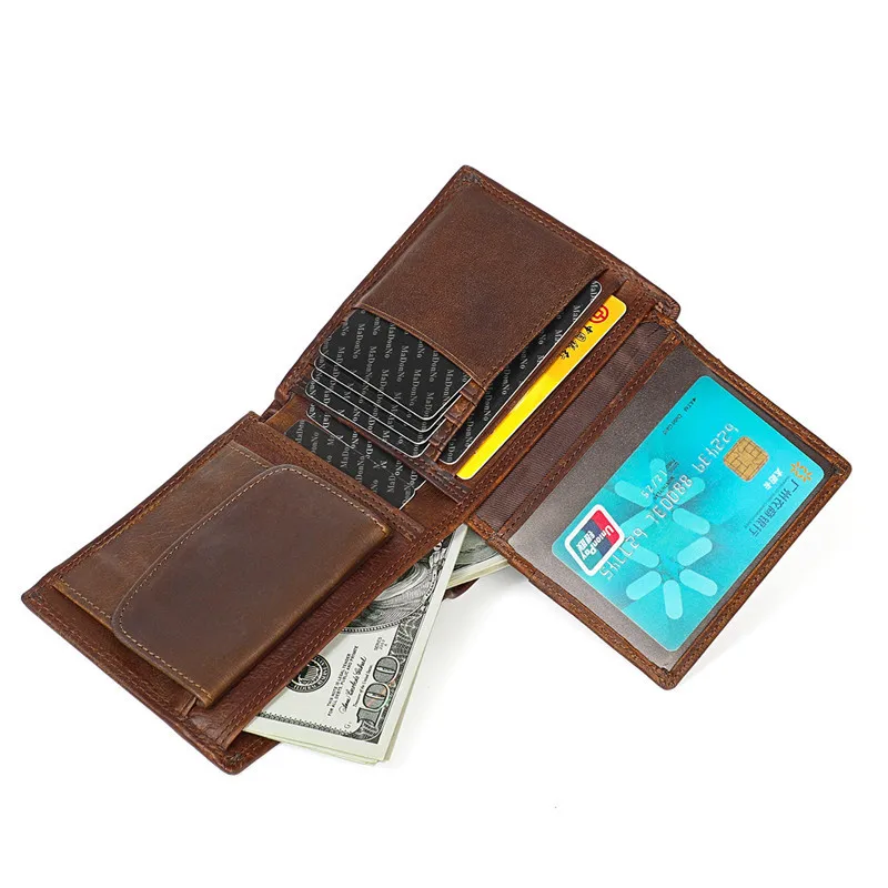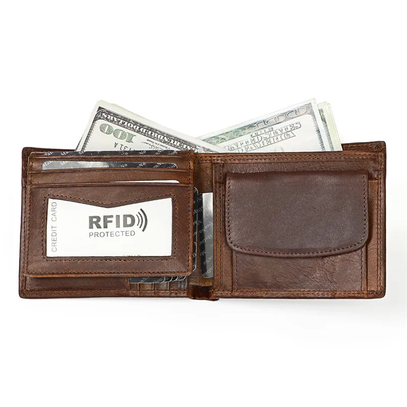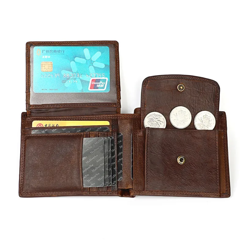 Винтажный дизайнерский мужской кошелек из 100% натуральной воловьей кожи, мужской короткий кошелек, кошелек с держателем для карт и кармашком для монет, мужские кошельки
