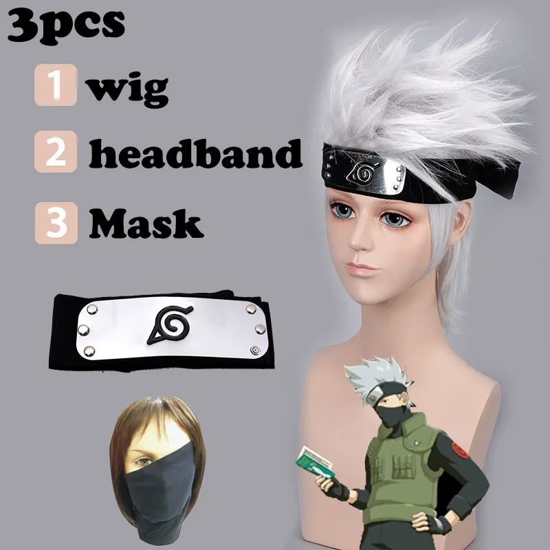 3 шт. Аниме косплей парик/повязка на голову/Маска Hatake Kakashi короткий многослойный серебристо-серый парик термостойкие волосы Косплей Костюм