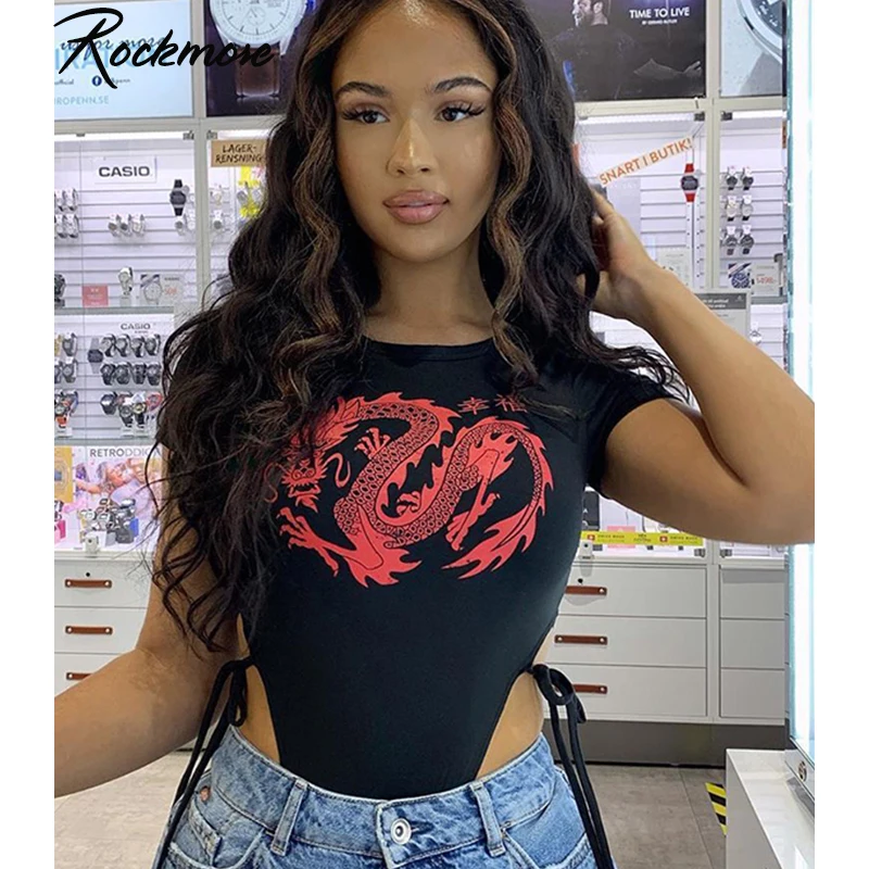 Комбинезон Rockmore женский с надписью дракона, пикантный бандажный боди с вырезами, короткий рукав, круглый вырез, летняя уличная одежда