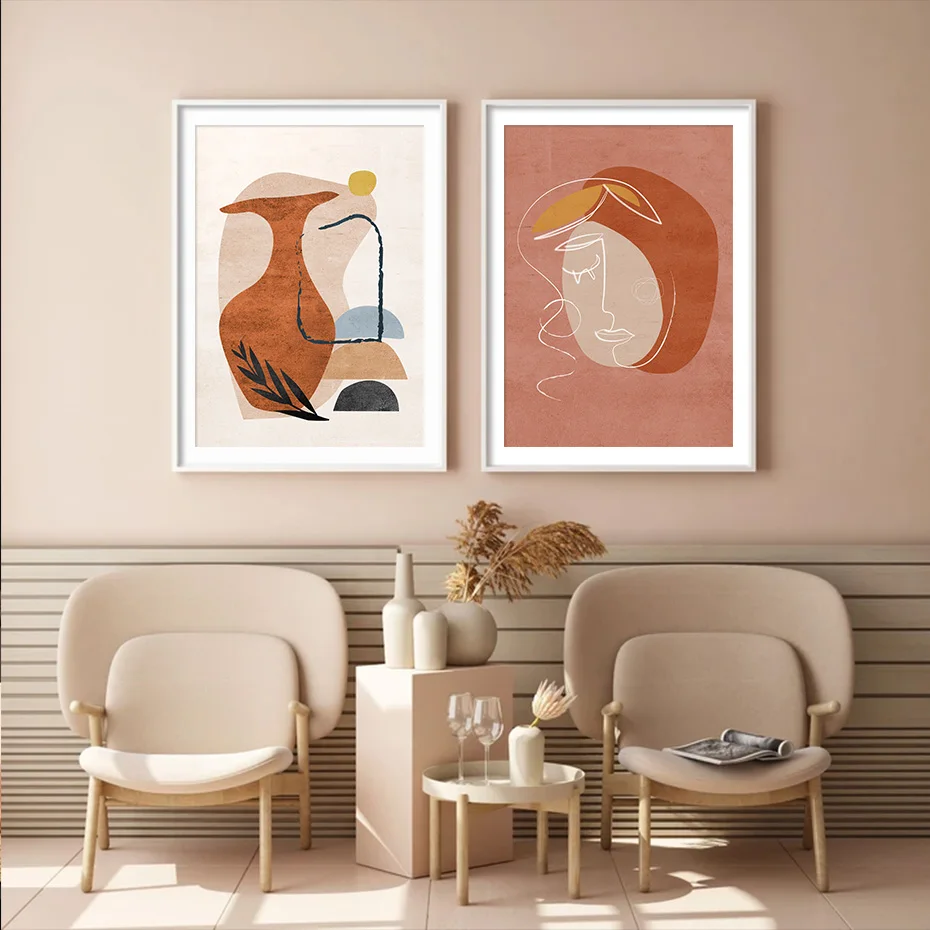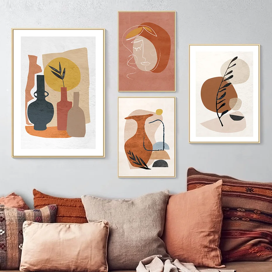 Абстрактная Терракотовая богемная Геометрическая линия, холст, живо...