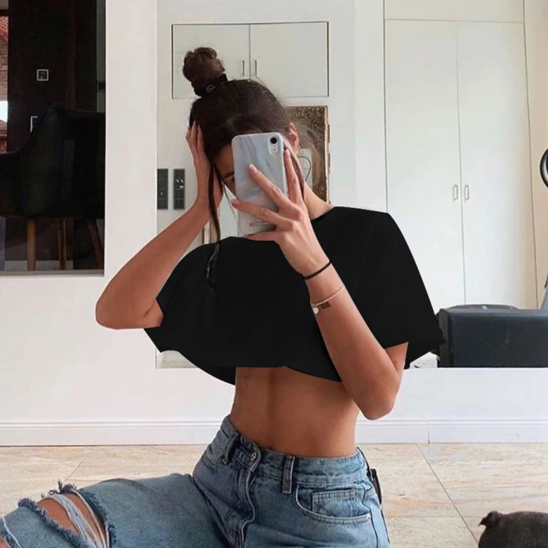 Женский укороченный топ Weekeep, белый однотонный повседневный летний топ с коротким рукавом, большого размера, 2021