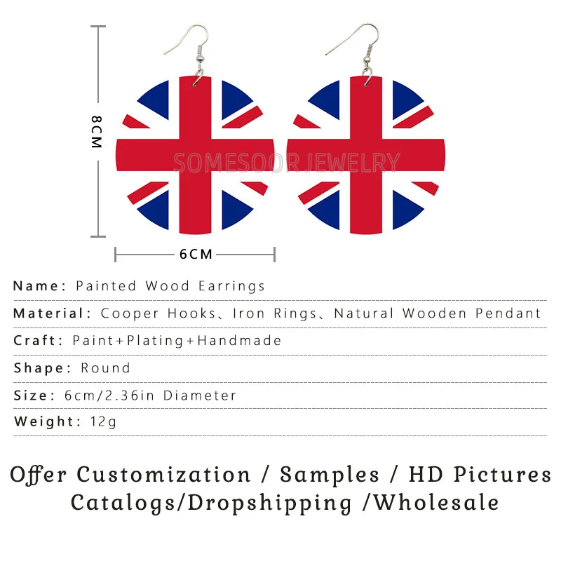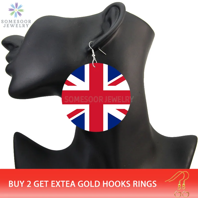 Серьги-подвески женские SOMESOOR, деревянные, с изображением национального флага Соединенного Королевства