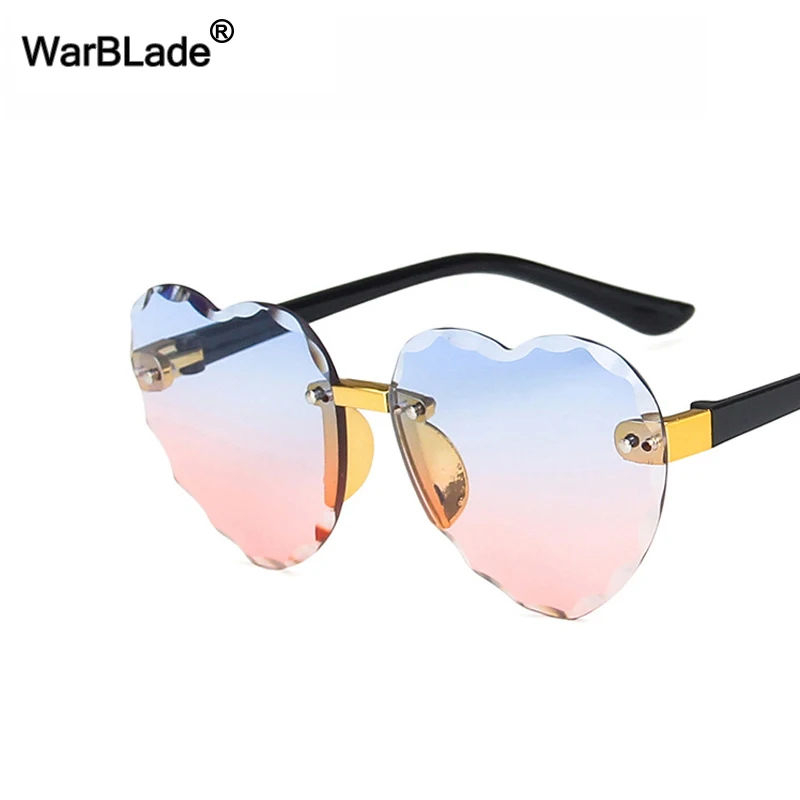Солнцезащитные очки WarBlade без оправы для мальчиков и девочек, милые детские солнечные очки в форме сердца с защитой UV400, для путешествий