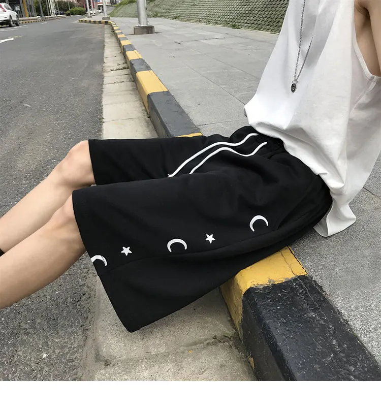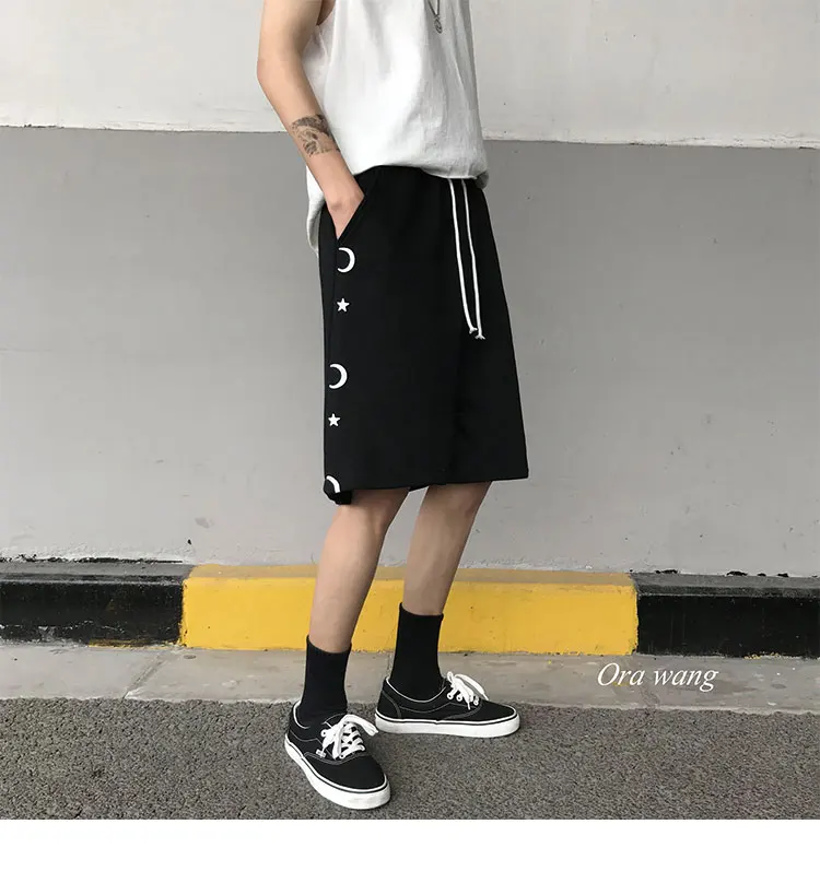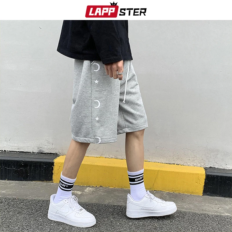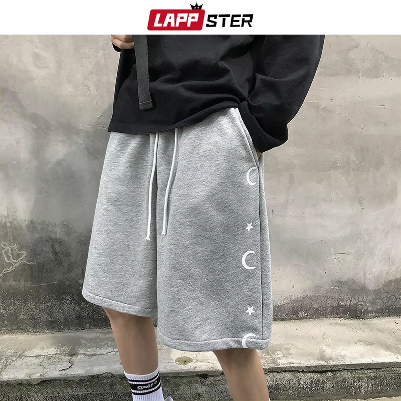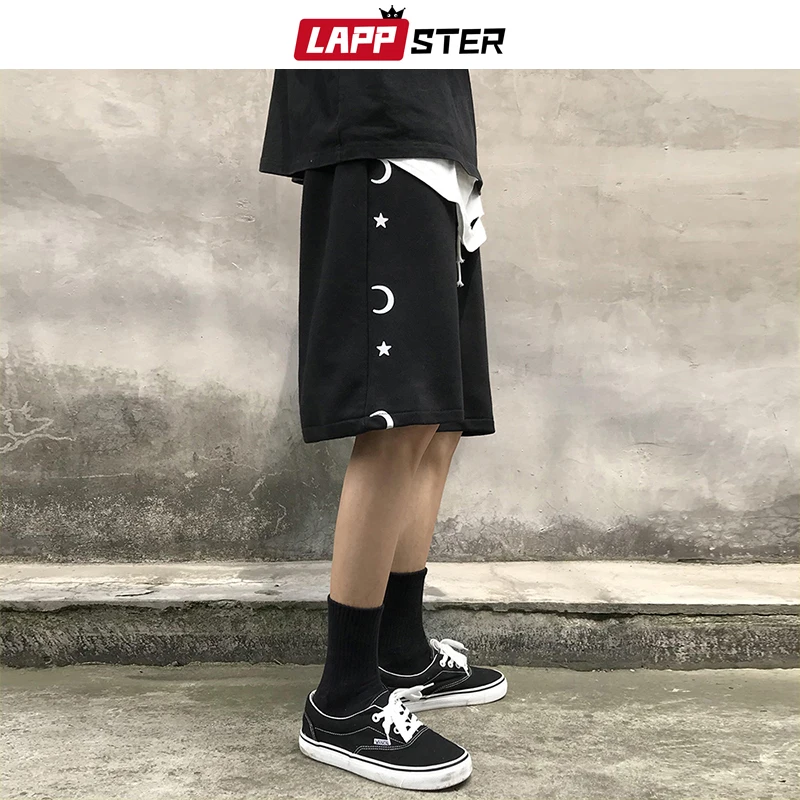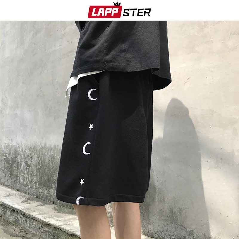 Шорты LAPPSTER мужские хлопковые с принтом Луны, повседневные Джоггеры в Корейском стиле, модная уличная одежда, черные спортивные штаны, лето 2022