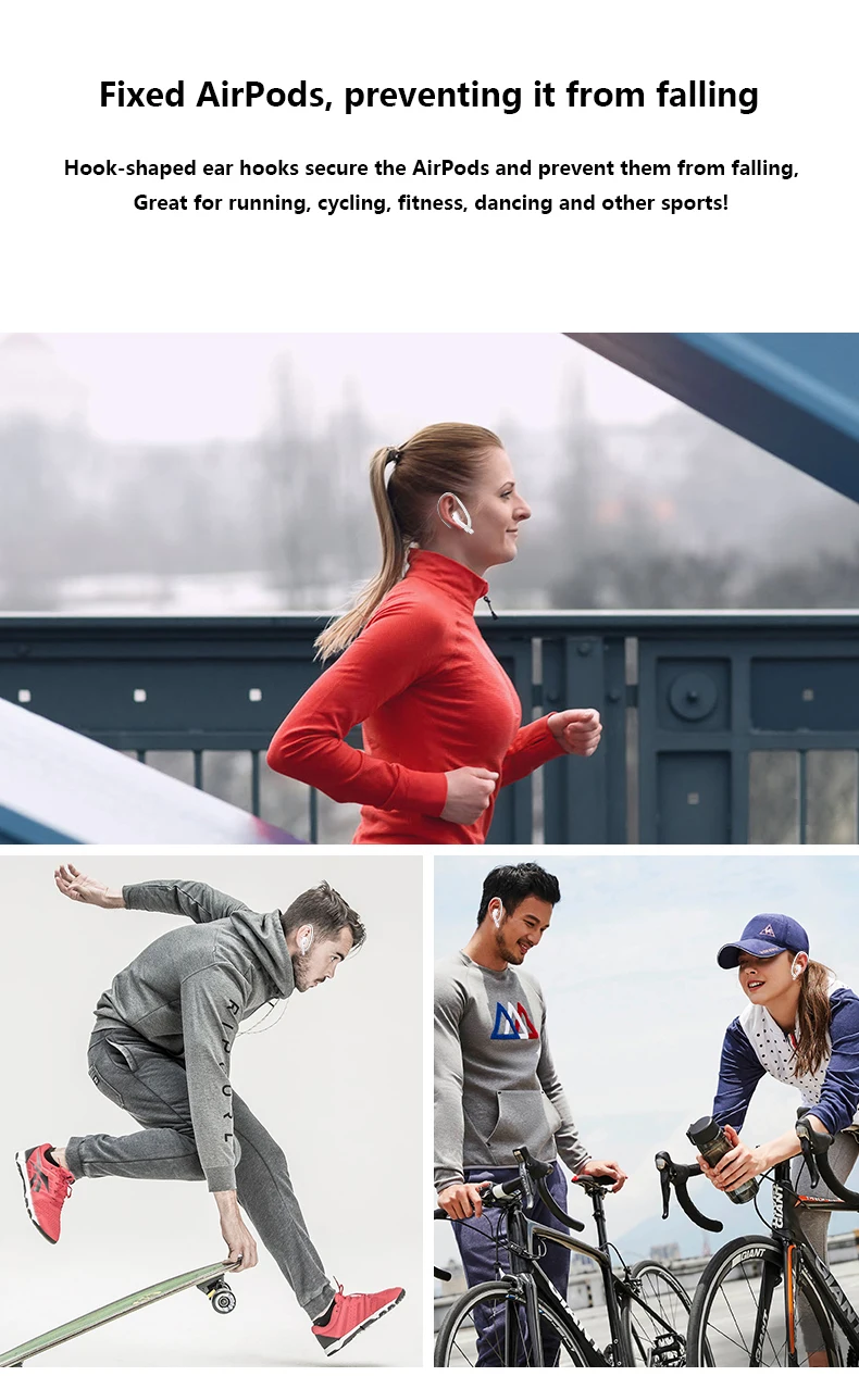 Новые спортивные крючки: Для Airpods 1/2 Для Airpods Pro Для Airpods 3 Гладкие края не причиняют дискомфорта вашим ушам, а мягкий материал не поцарапает Airpods.