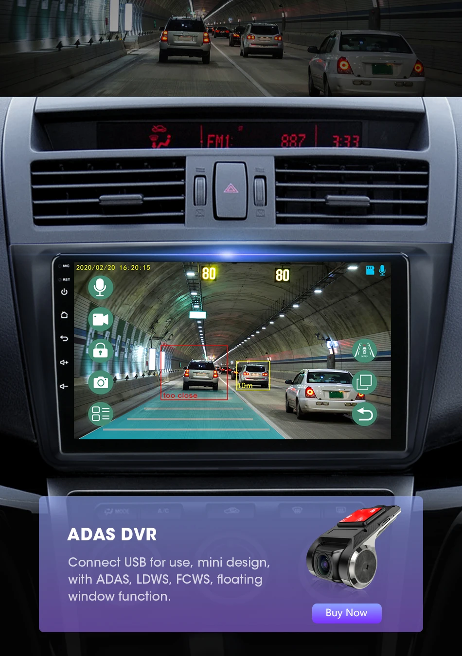 Поддерживает подключение к видеорегистраторУ ADAS. ADAS DVR имеет несколько встроенных ассистивных технологий вождения,
