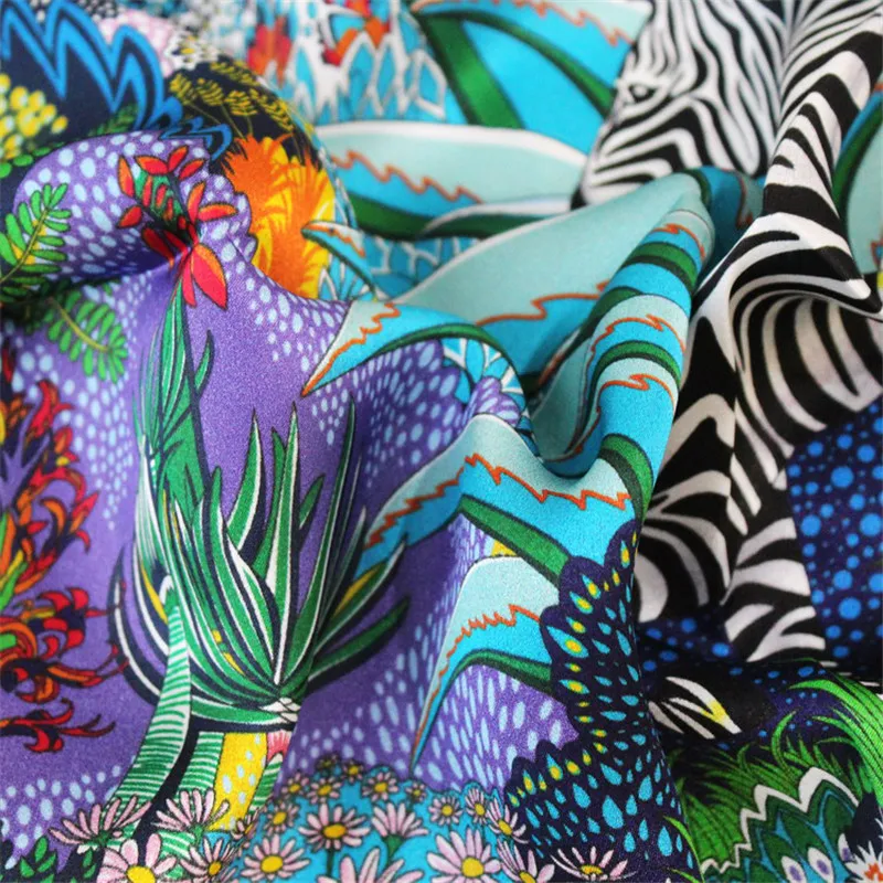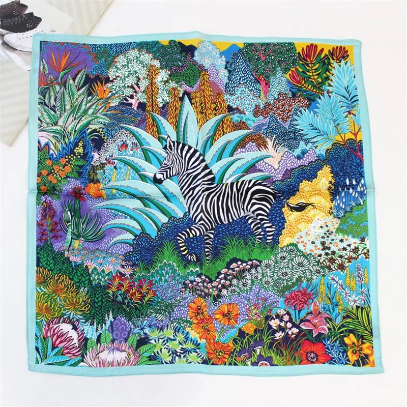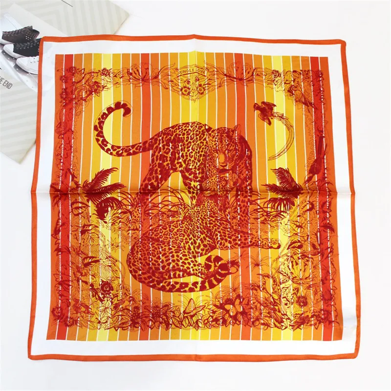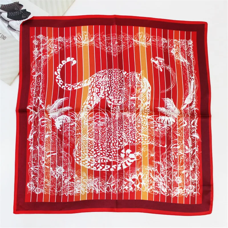 Женский квадратный шарф из 100% чистого шелка, с принтом зебры и леопарда, 53x53 см