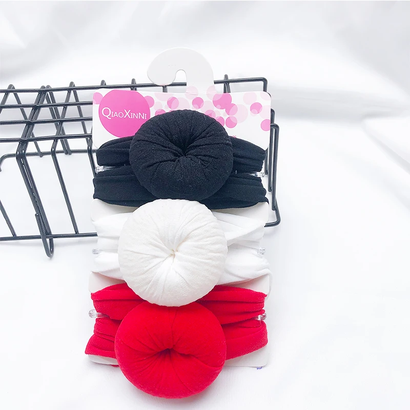 3 шт.лот Детская повязка на голову с круглыми шариками для новорожденных девочек Однотонные головные уборы эластичная повязка для волос для новорожденных Детские аксессуары